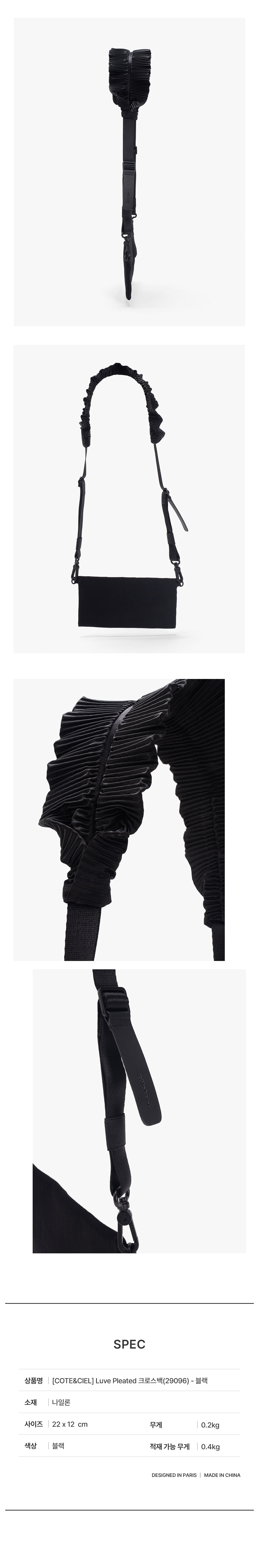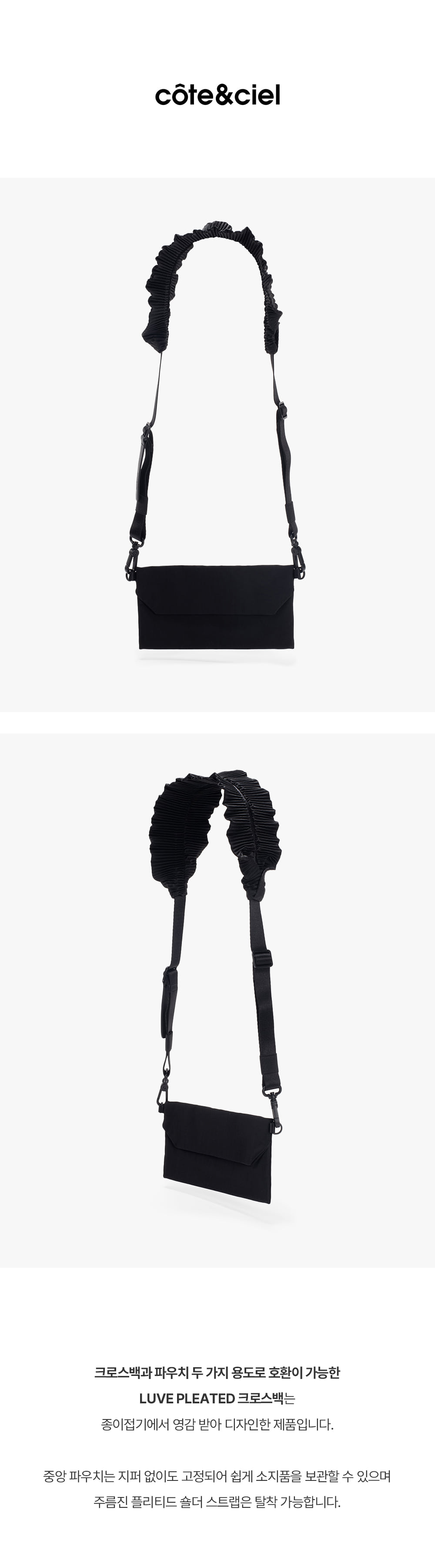 꼬떼시엘 러브 플리츠드 크로스백(29096) - 블랙