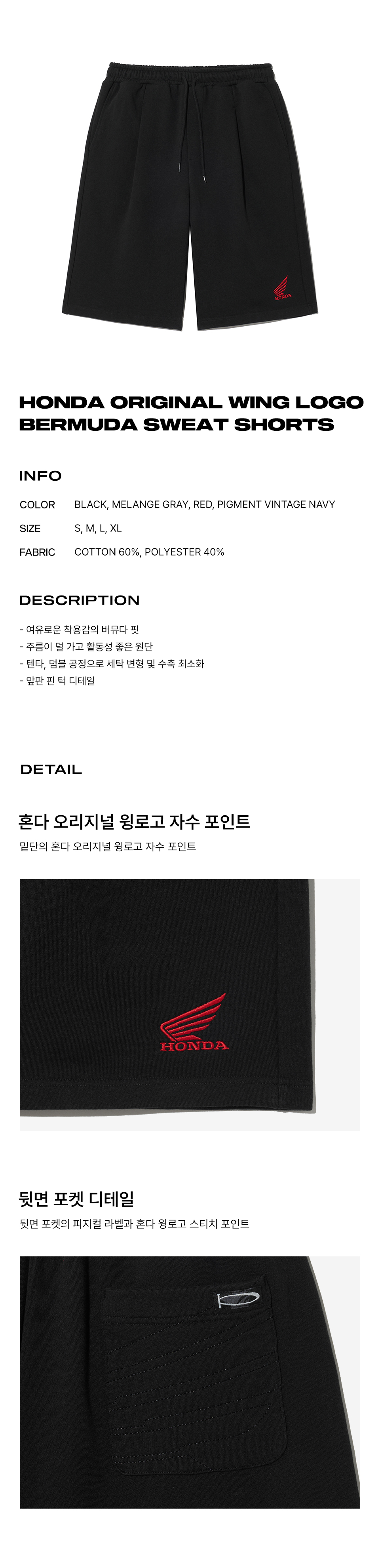 혼다 오리지널 윙 로고 버뮤다 스웻팬츠 블랙