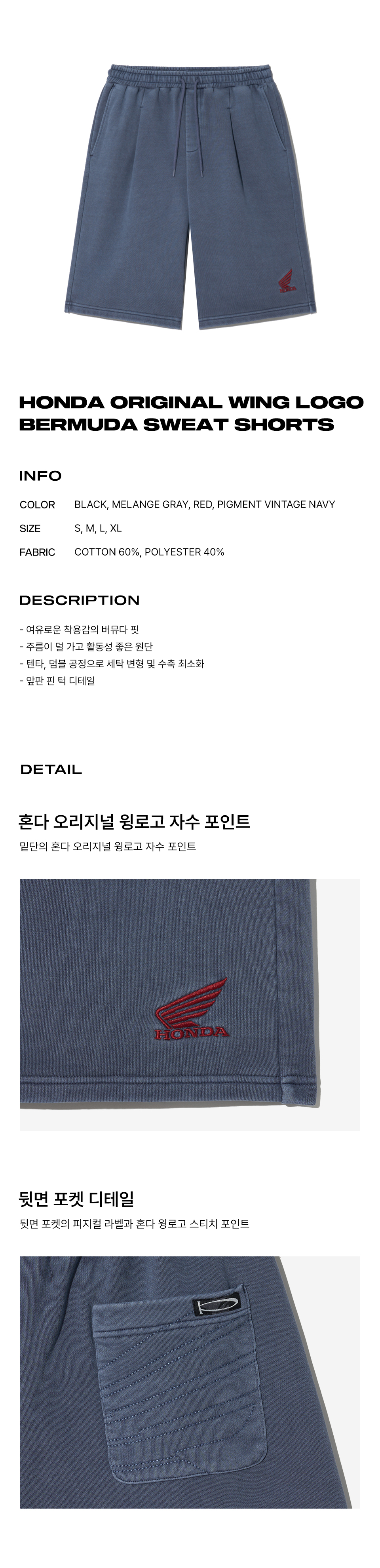 혼다 오리지널 윙 로고 버뮤다 스웻팬츠 빈티지네이비