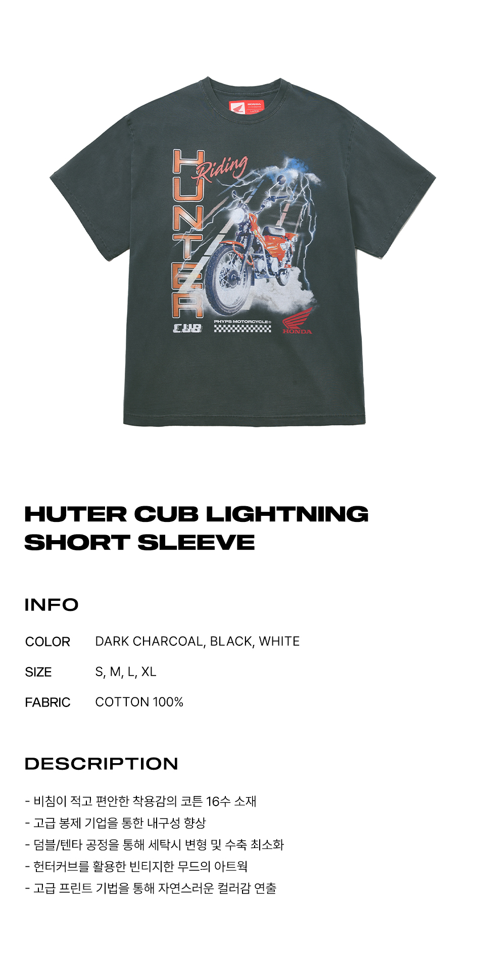 혼다 라이트닝 헌터커브 숏슬리브 차콜