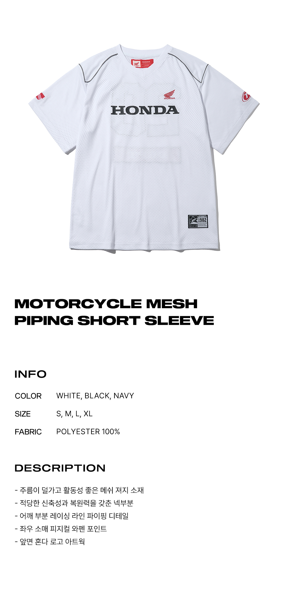 혼다 모터사이클 파이핑 메쉬 숏슬리브 화이트