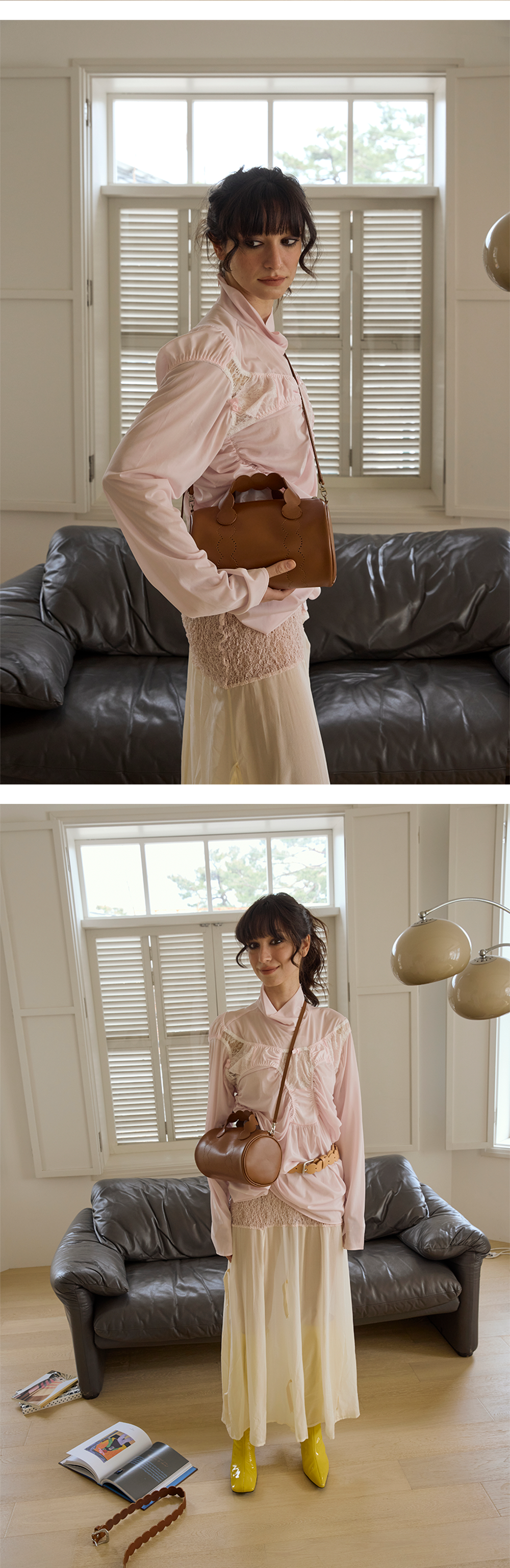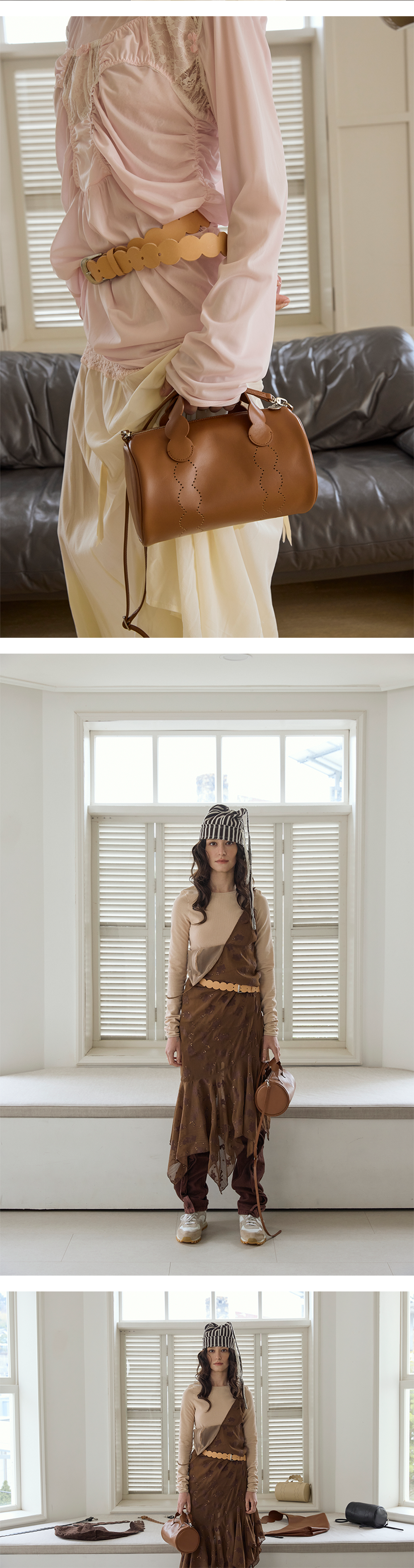 DETAILS 도톰한 원통형 실루엣 위에 곡선을 따라 반복되는 펀칭 디테일이 잔잔한 리듬을 만들어냅니다. 밤볼레 특유의 부드러운 곡선은 손잡이 라인에도 이어지며, 가방 전체에 일관된 무드를 더해줍니다. 짧은 핸들로 토트백처럼 들 수 있으며, 함께 제공되는 얇은 가죽 스트랩을 이용해 크로스백으로도 연출할 수 있어 활용도가 높습니다. 입구는 지퍼 여밈으로 마감되어 실용적이고 안정적인 수납이 가능합니다. 간결한 실루엣 안에 숨겨진 곡선의 유희. 어디에나 잘 어울리지만 평범하지 않은 가방입니다. MATERIAL Cow leather 100% -이탈리아 Mastrotto사 최고급 소가죽이 사용되었습니다. Inner is cotton. Metal zipper (YKK)