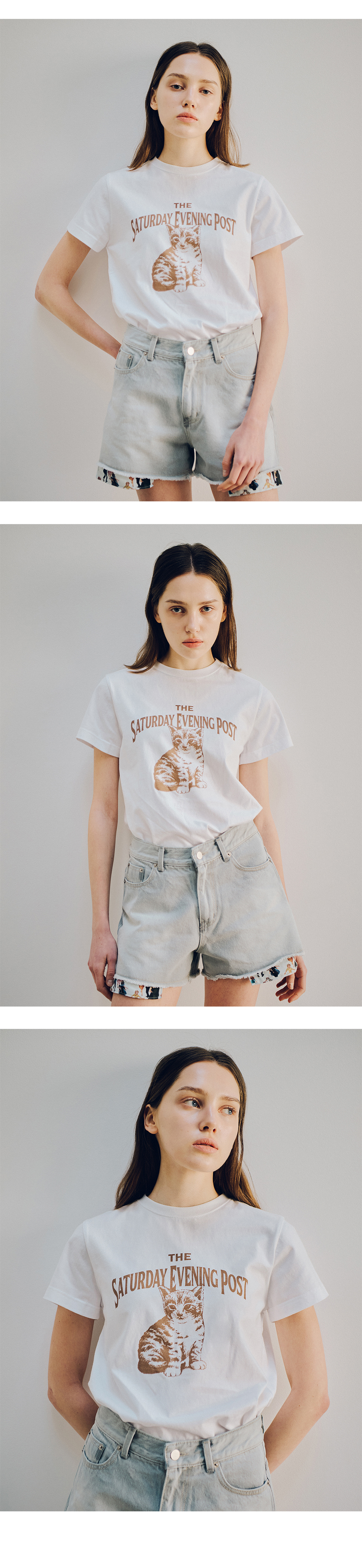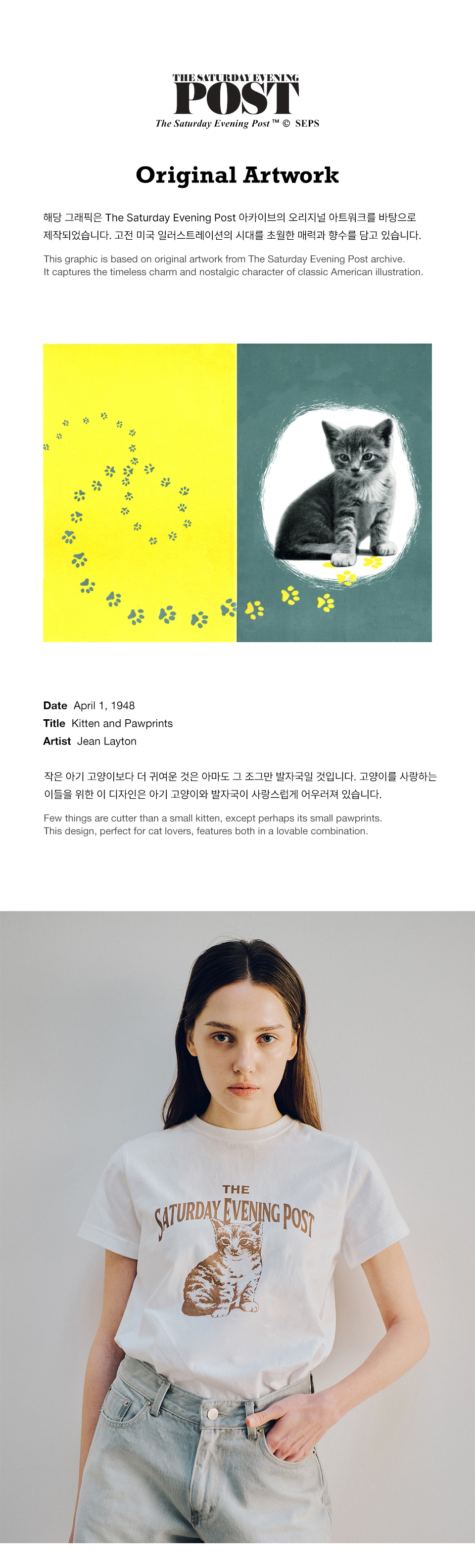 더 새터데이 이브닝 포스트 포스트 키튼 티셔츠 브라운