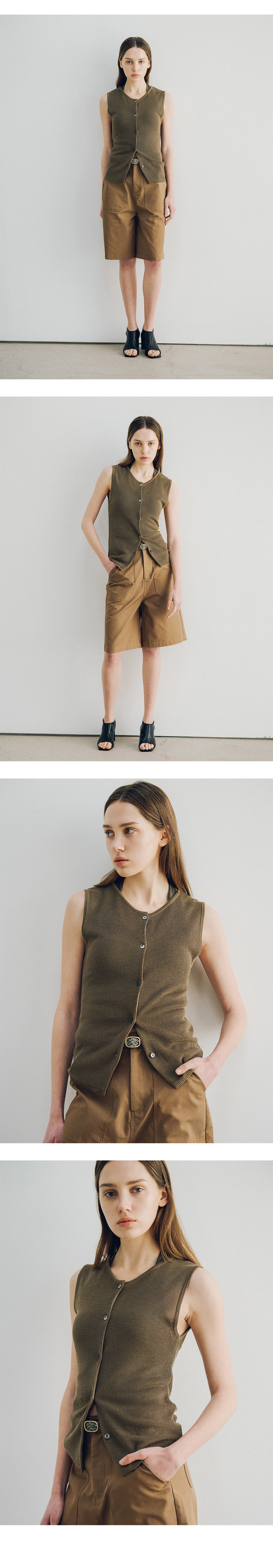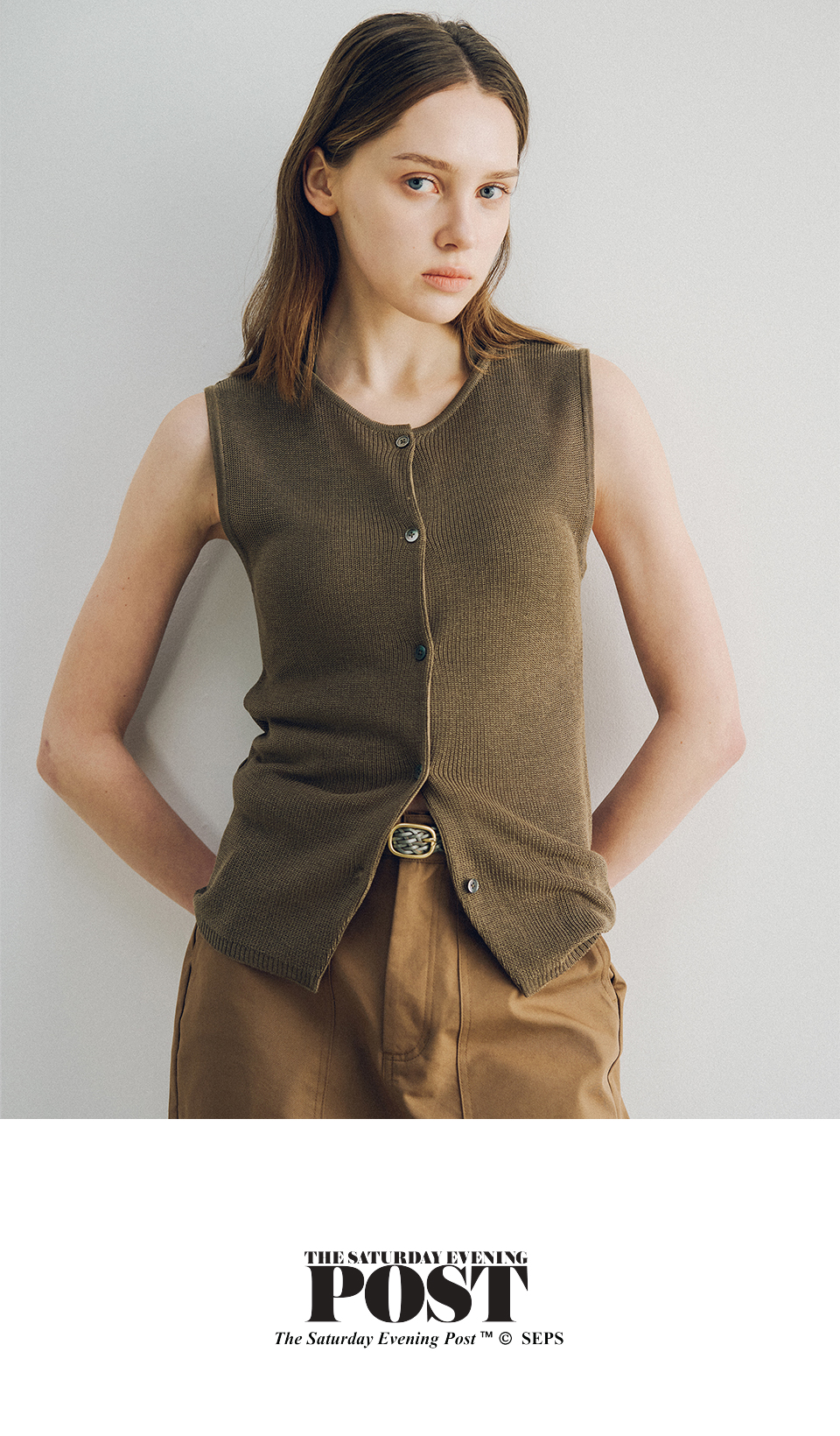 더 새터데이 이브닝 포스트 하이 게이지 니트 베스트 카키