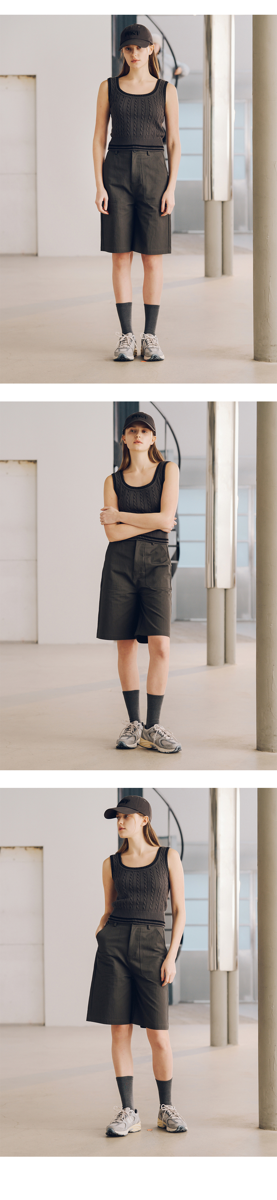 더 새터데이 이브닝 포스트 케이블 니트 슬리브리스 차콜
