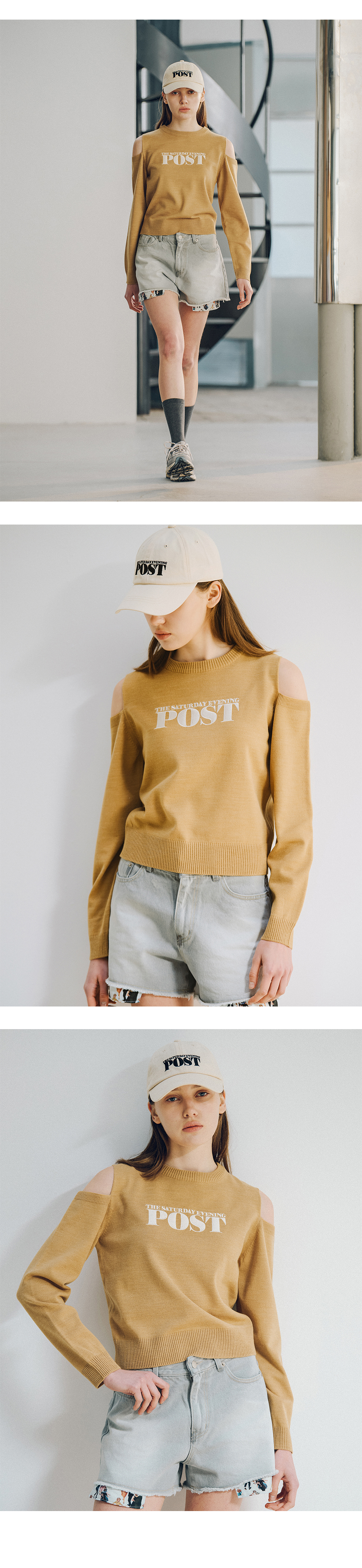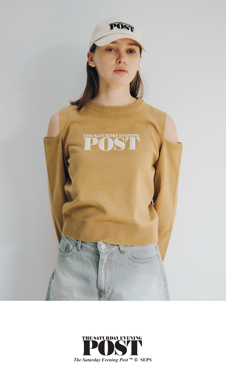 더 새터데이 이브닝 포스트 컷아웃 니트 베이지