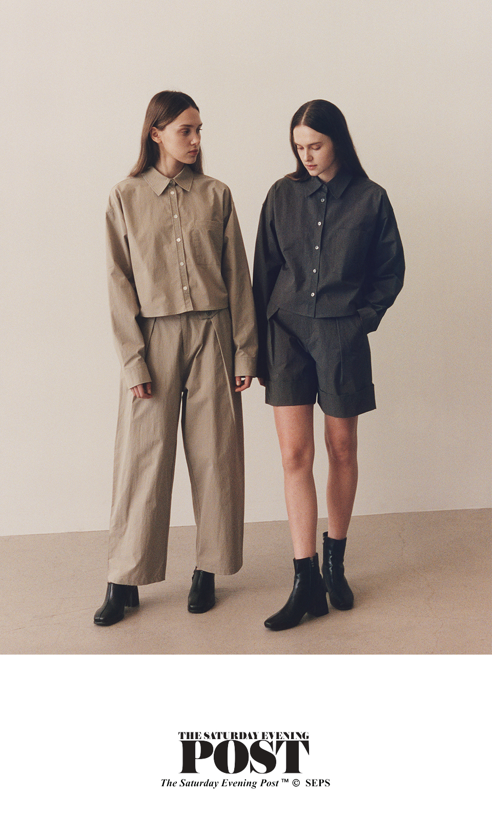 더 새터데이 이브닝 포스트 베이직 크롭 셔츠 베이지