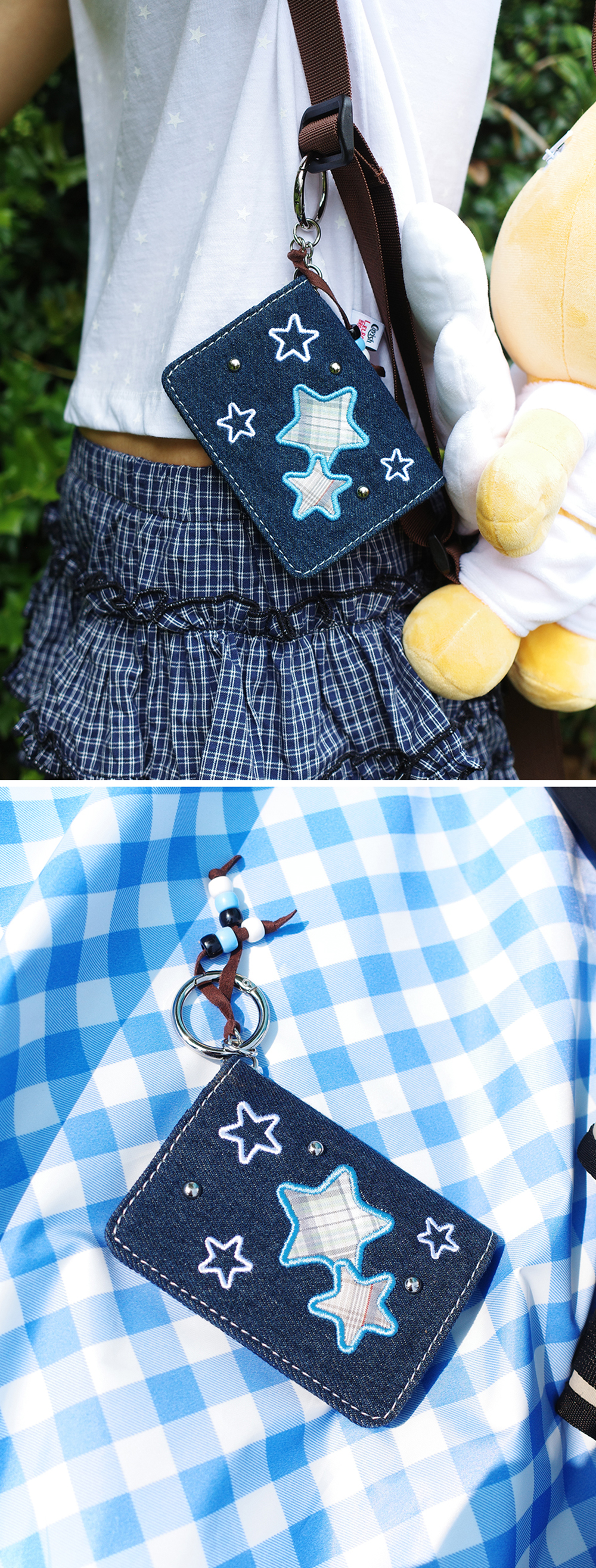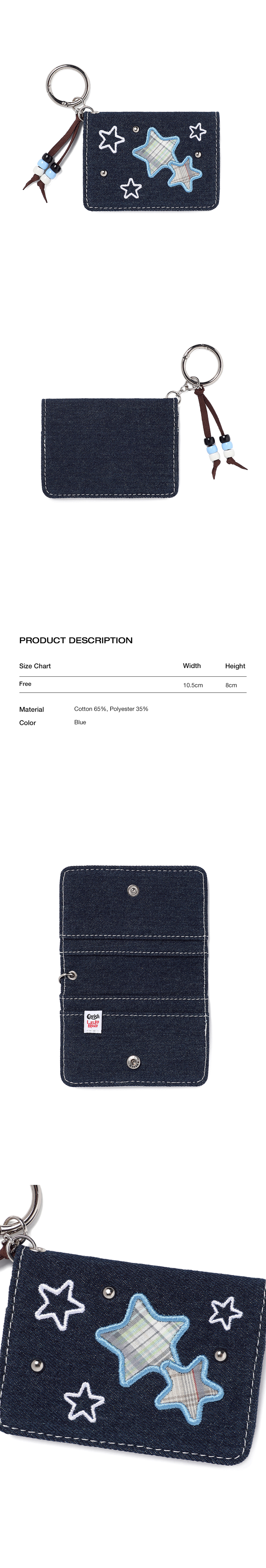 카비시 x 렐보브라운 체크 아플리케 데님 월렛 블루