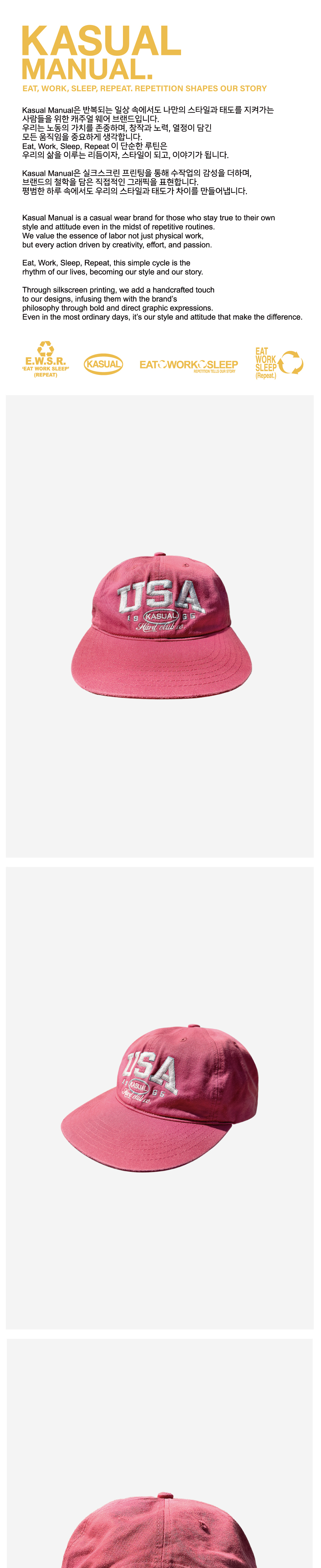 캐주얼 매뉴얼 유에스에이 모자 핑크