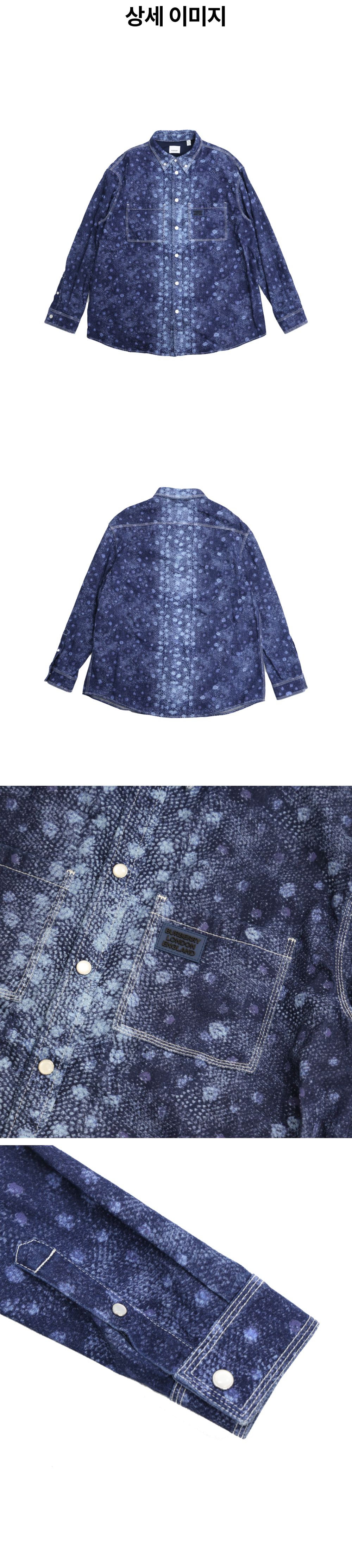 버버리 4567470 다크 캔버스 블루 피쉬 스케일 프린트 셔츠 데님 스냅