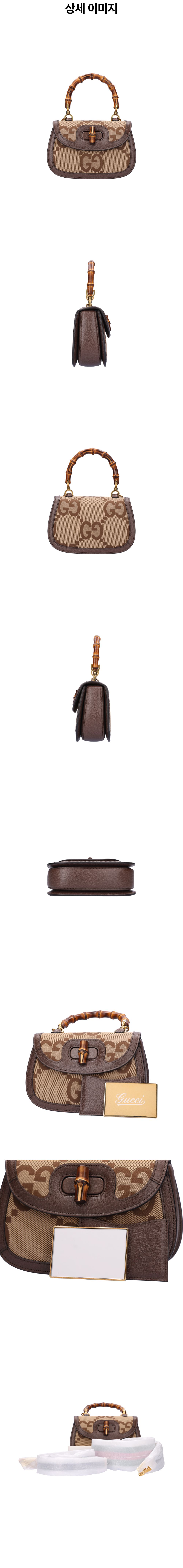 구찌 675797 뱀부 1947 스몰 파이톤 핸드백 레더 패브릭 브라운
