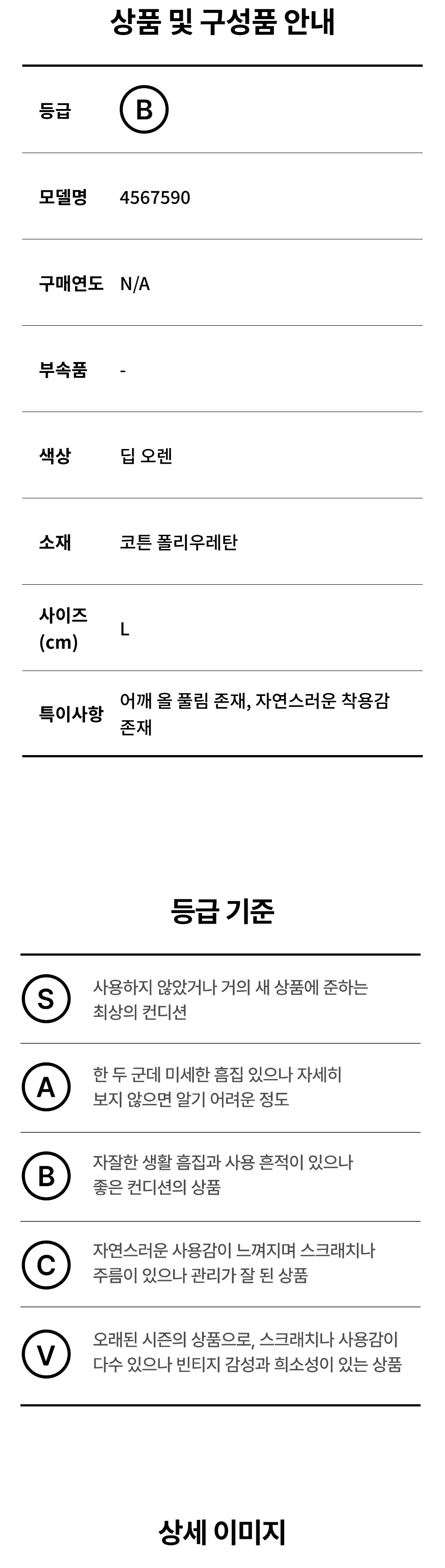 모든 상품(가죽, 의류, 잡화, 슈즈 등)은 사용자의 사용방법과 환경에 따라 변형, 변색이 될 수 있으니 반드시 취급 라벨에 표시된 관리 안내를 따르시길 권장 드립니다. 이는 정도의 차이가 있으며 과도한 체열과 땀, 습기, 빛, 마찰은 제품의 손상 및 변형을 일으킬 수 있으므로 주의하시길 바랍니다.
