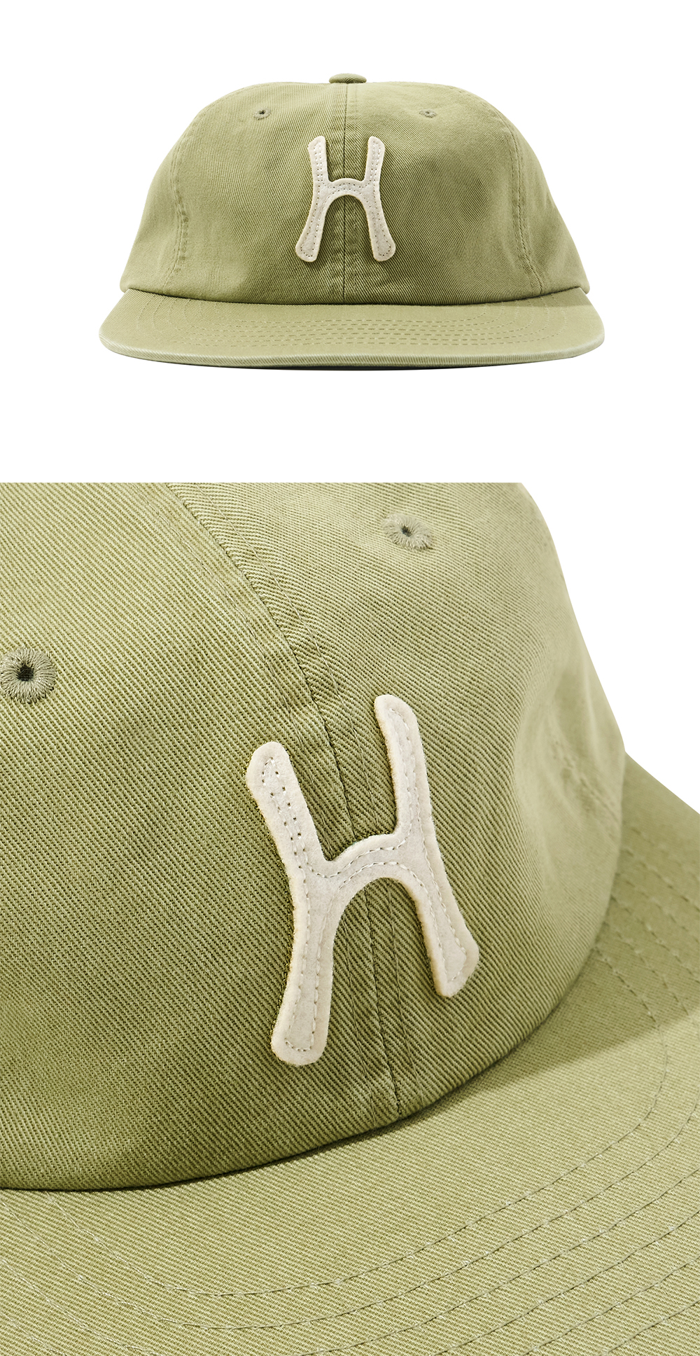 헬로선라이즈 H 로고 코튼 릴랙스 핏 6패널 캡 올리브