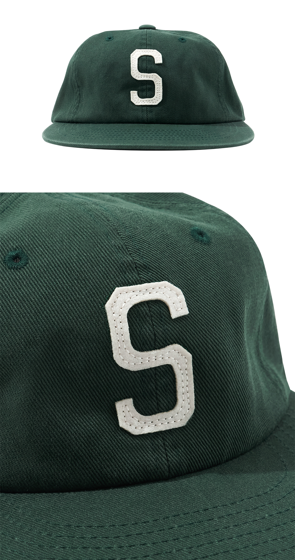 헬로선라이즈 S 로고 코튼 릴랙스 핏 6패널 캡 딥 그린