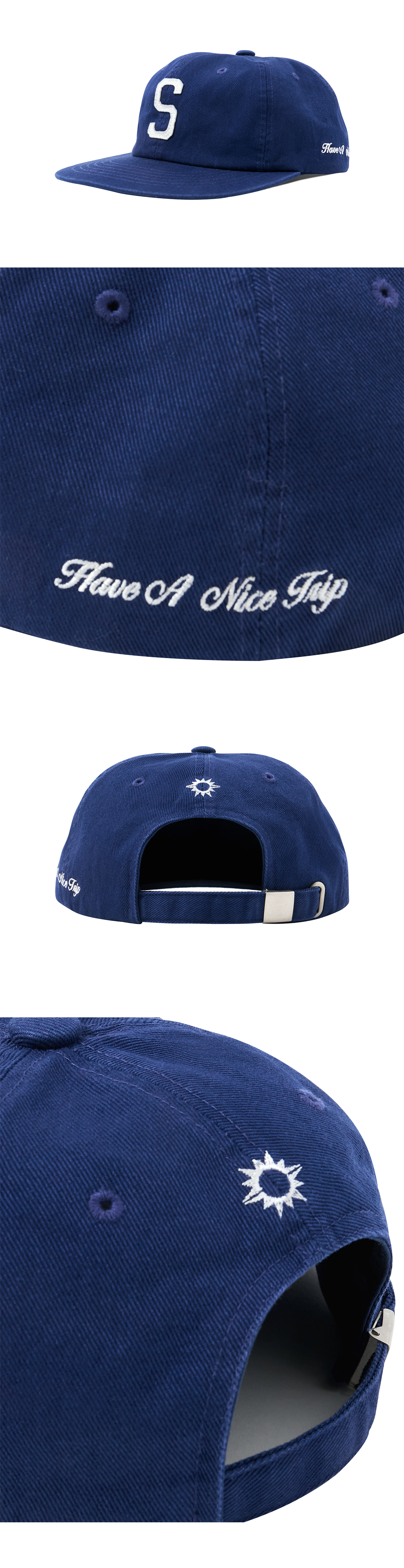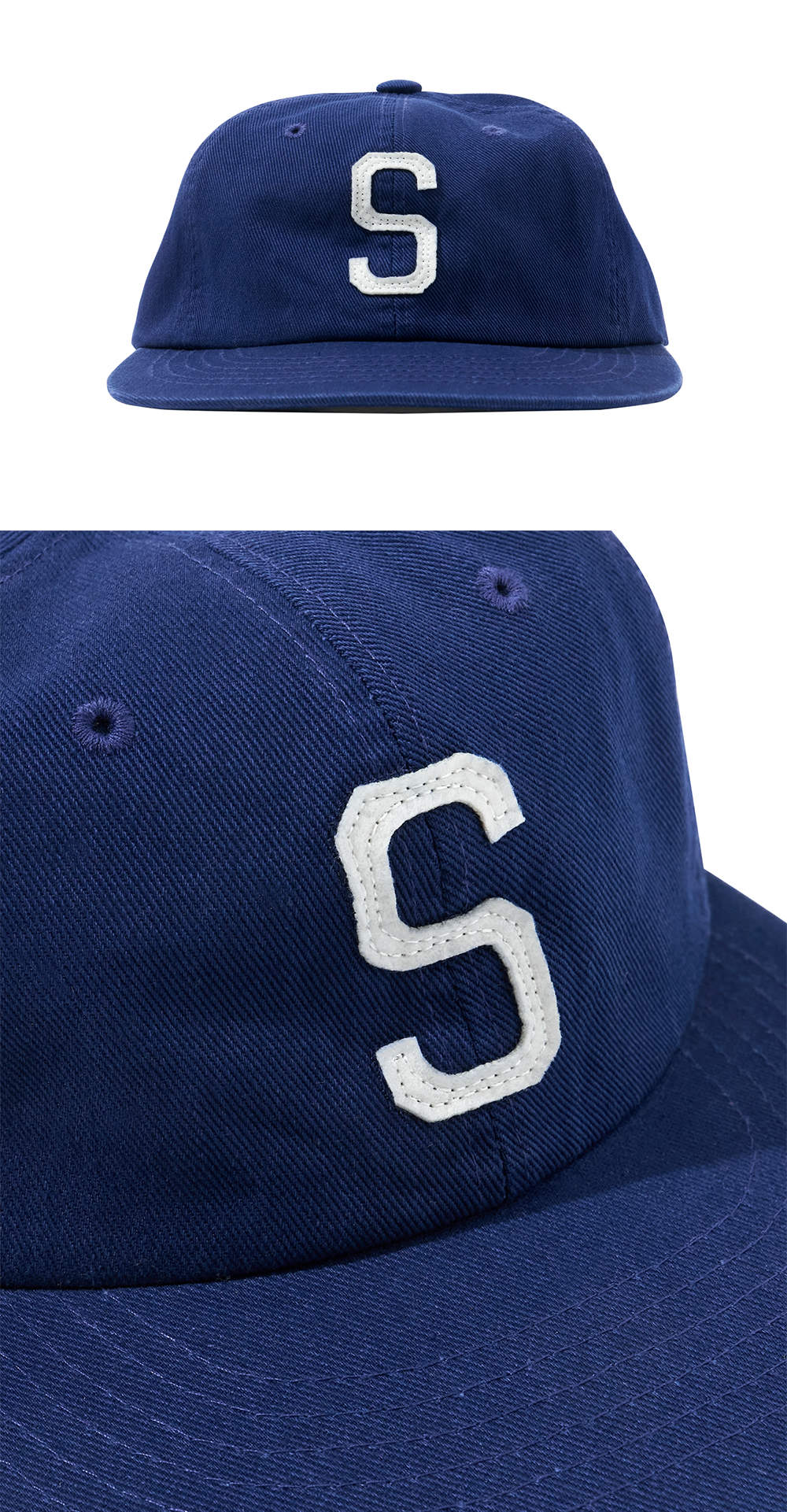 헬로선라이즈 S 로고 코튼 릴랙스 핏 6패널 캡 딥 블루
