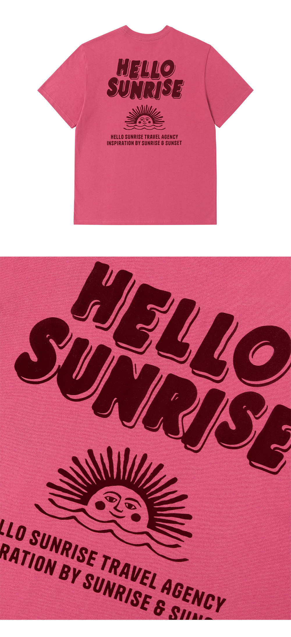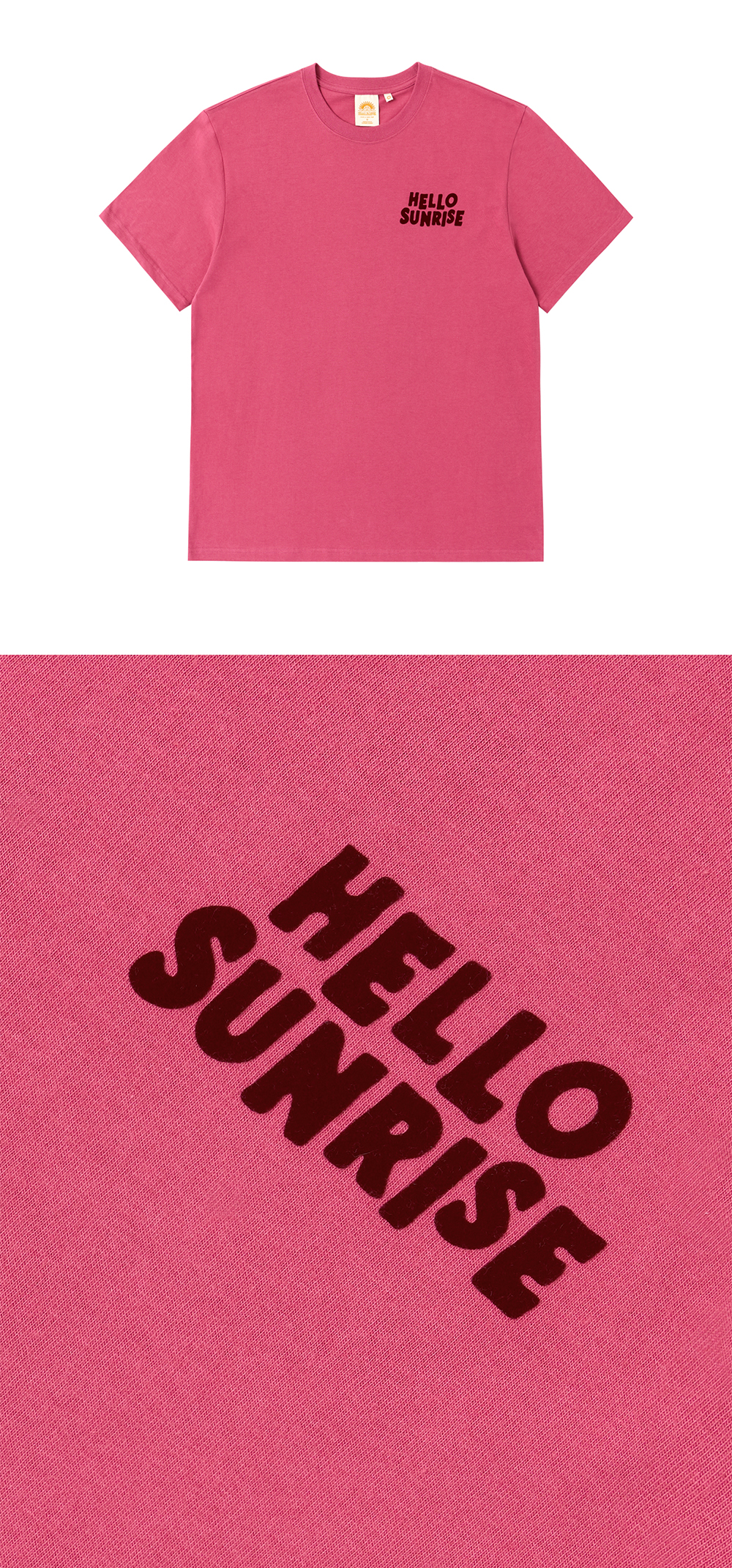 Hello Sunrise 스탠다드 핏의 남녀 공용의 반팔 티셔츠입니다. - 전면 헬로선라이즈 Volume Typo 후로피 그래픽 - 후면 헬로선라이즈 Volume Logo 후로피 그래픽 - 이전보다 여유로워진 사이즈와 착용감 * 측정 기준에 따라 1-2cm의 차이가 있을 수 있습니다. * Cotton 100% Made in Korea