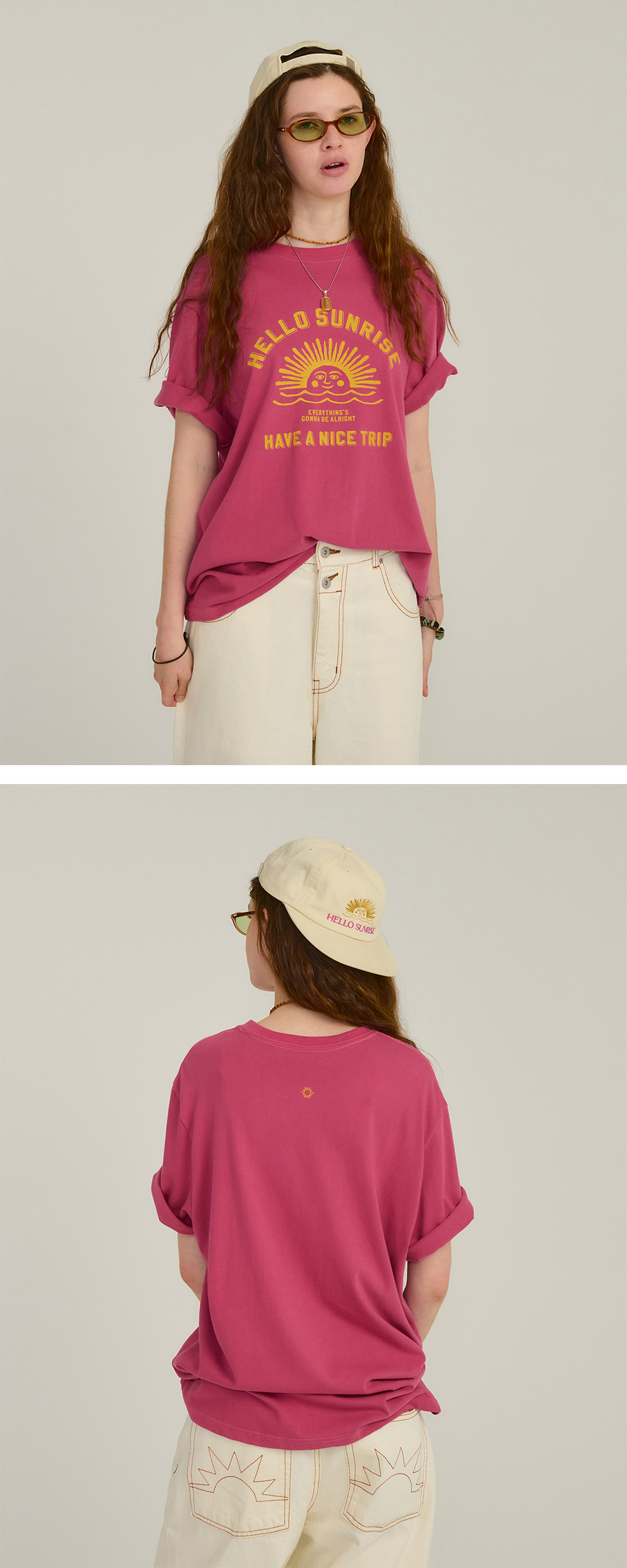Hello Sunrise 스탠다드 핏의 남녀 공용의 반팔 티셔츠입니다. - 전면 헬로선라이즈 아치 로고 그래픽 - 후면 헬로선라이즈 심볼 그래픽 - 이전보다 여유로워진 사이즈와 착용감 * Model : 177cm / Size : Medium * 측정 기준에 따라 1-2cm의 차이가 있을 수 있습니다. * Cotton 100% Made in Korea