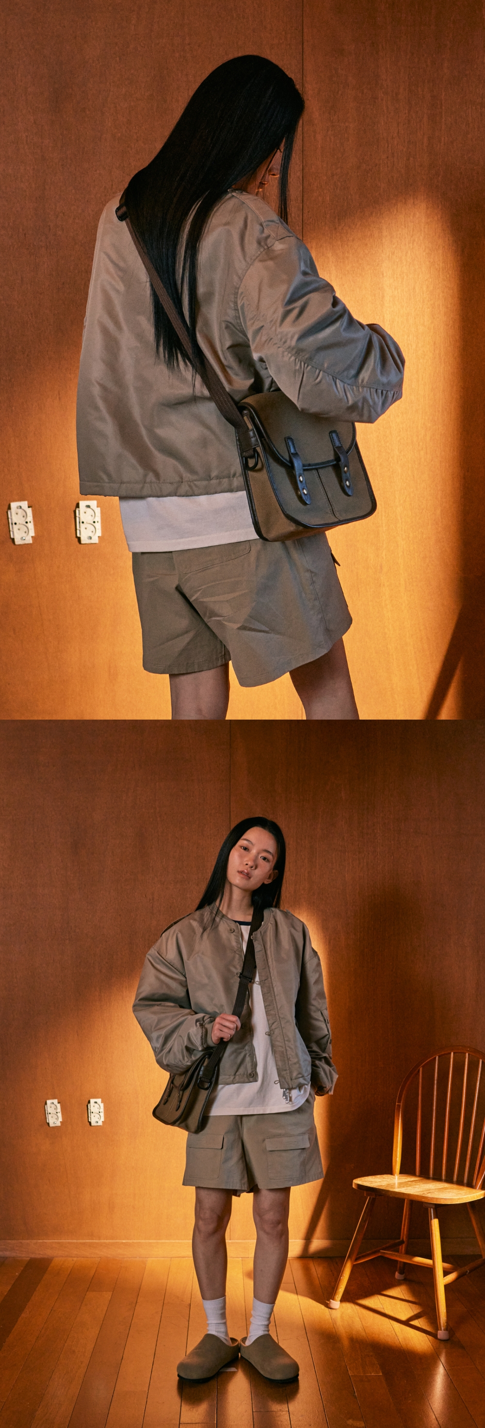 고밀도의 탄탄한 캔버스 원단을 사용한 톤온톤 배색 크로스백 가방 시접 및 모서리부분을 페이크레더 배색으로 고급스러운 느낌을 연출하였습니다. 클로즈 스트랩에 자석 스냅을 사용하여 보다 안정적으로 수납품을 보관 할 수 있습니다. 어깨끈의 버클을 활용하여 끈길이를 최대 111.5cm까지 조절하실수 있습니다. 옆면의 D링에 키링 등 다양한 악세사리를 활용하실수 있습니다. Shell : Cotton 100% FREE : 높이 25, 너비 29