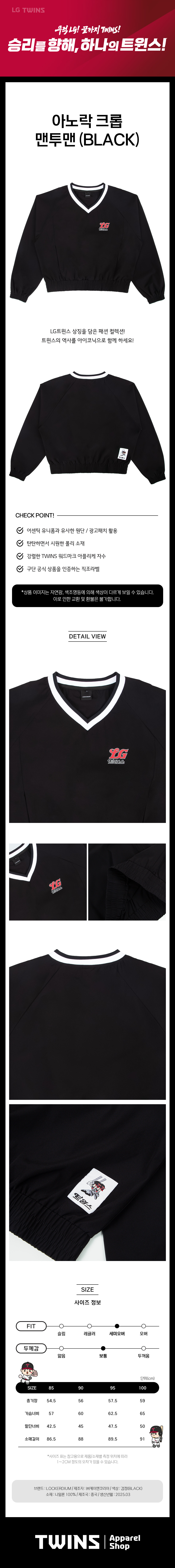 LG트윈스 아이코닉 아노락 크롭 맨투맨 블랙