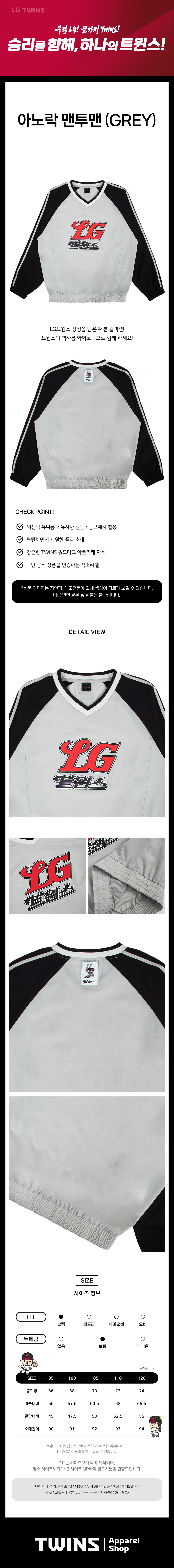 LG트윈스 아이코닉 아노락 맨투맨 그레이
