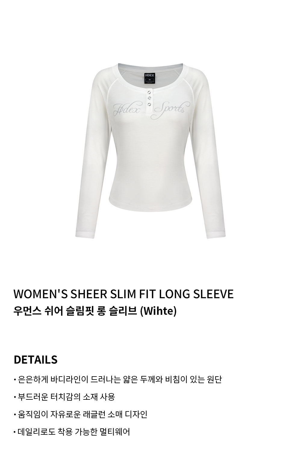 에이치덱스 우먼스 쉬어 슬림핏 롱 슬리브 화이트