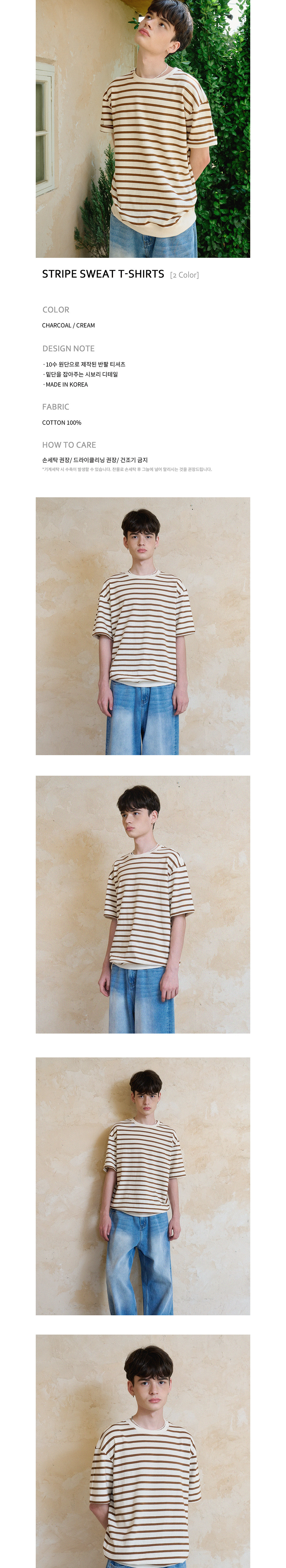 노운 스트라이프 스웨트 티셔츠 크림