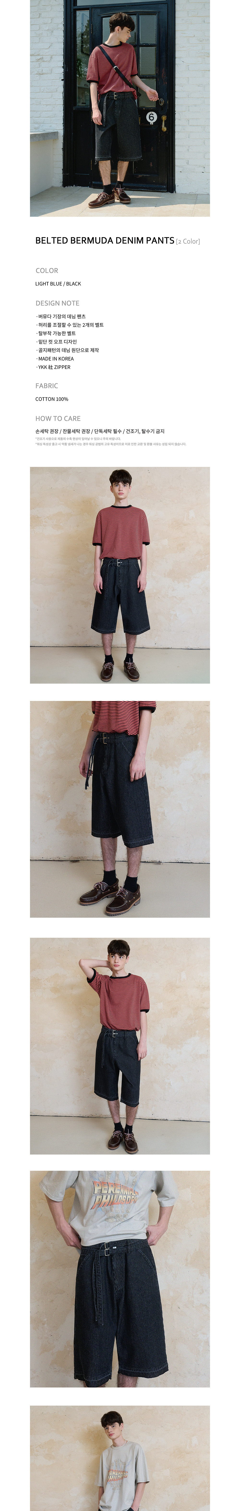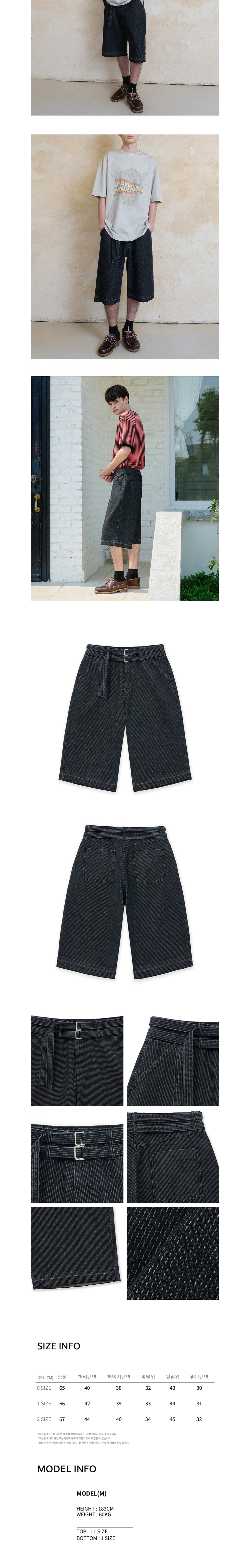 노운 벨티드 버뮤다 데님 팬츠 블랙