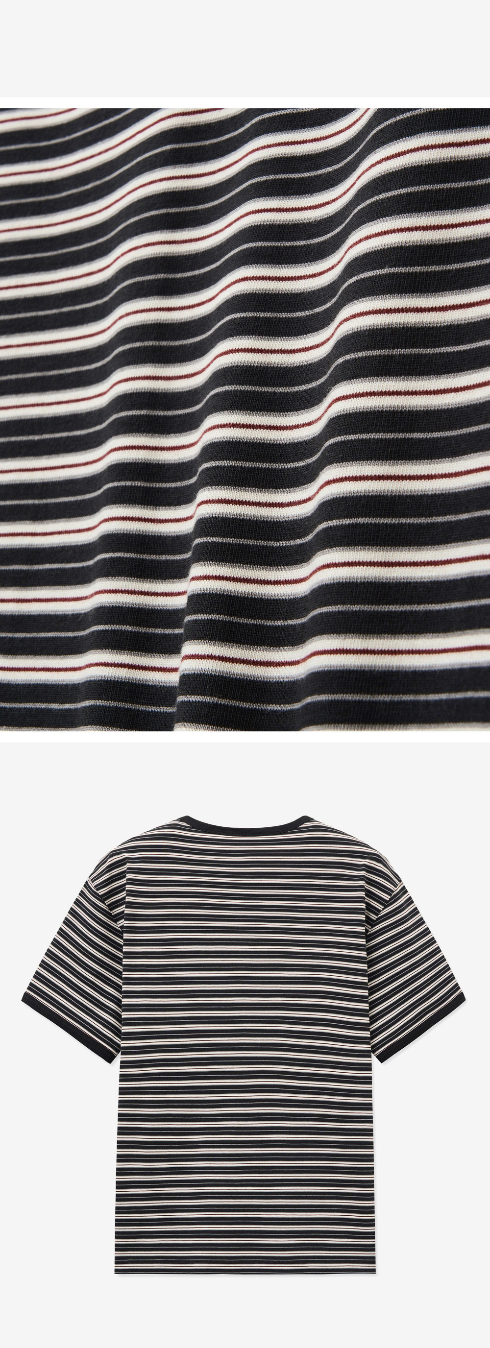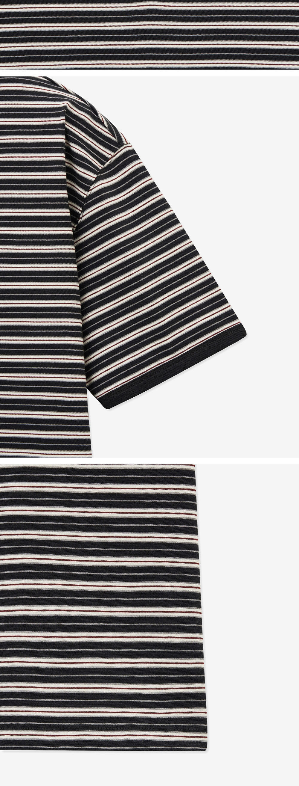 티엔지티 스트라이프 헨리넥 티셔츠 카키
