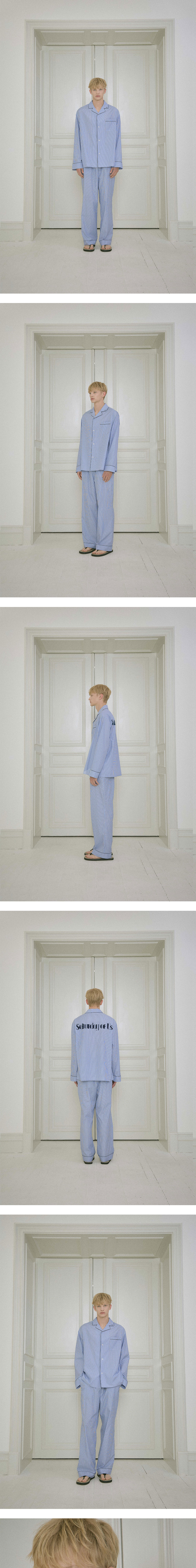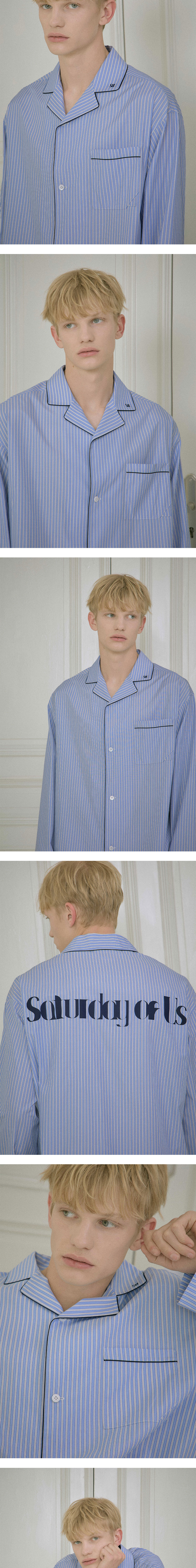 - 멀티 스트라이프 패턴 - 카라 로고 프린팅 - 체스트 포켓 - 폴드 포켓 디테일 - 파이팅 디테일 - 로고 각인 단추