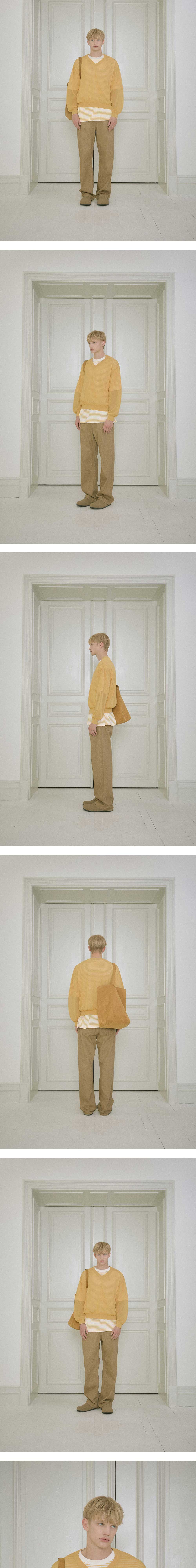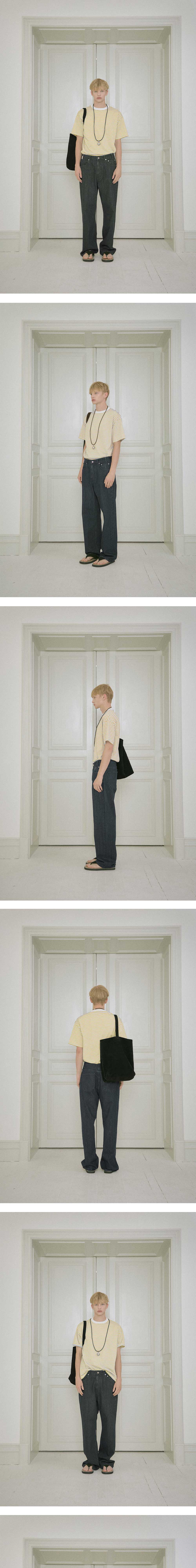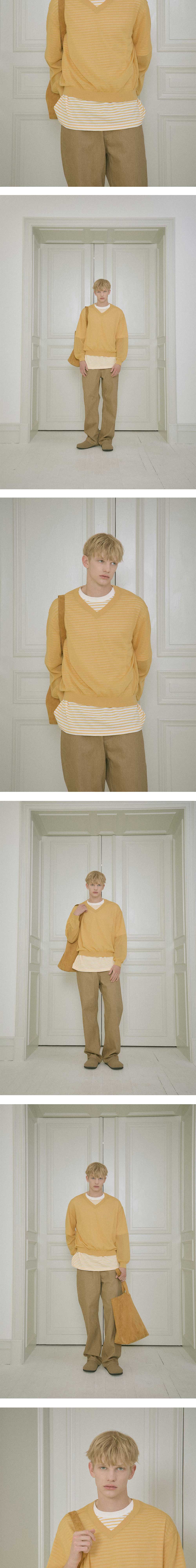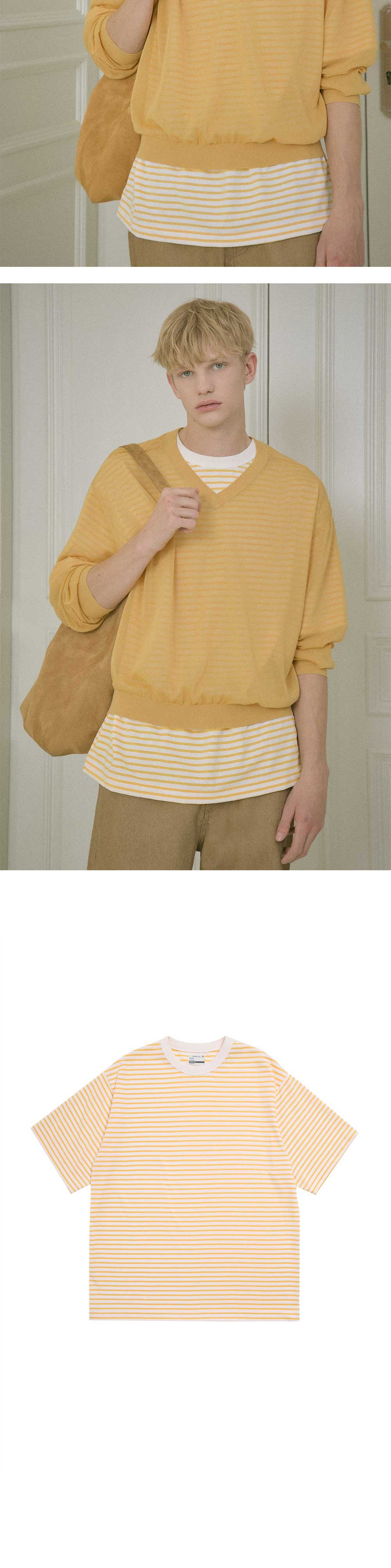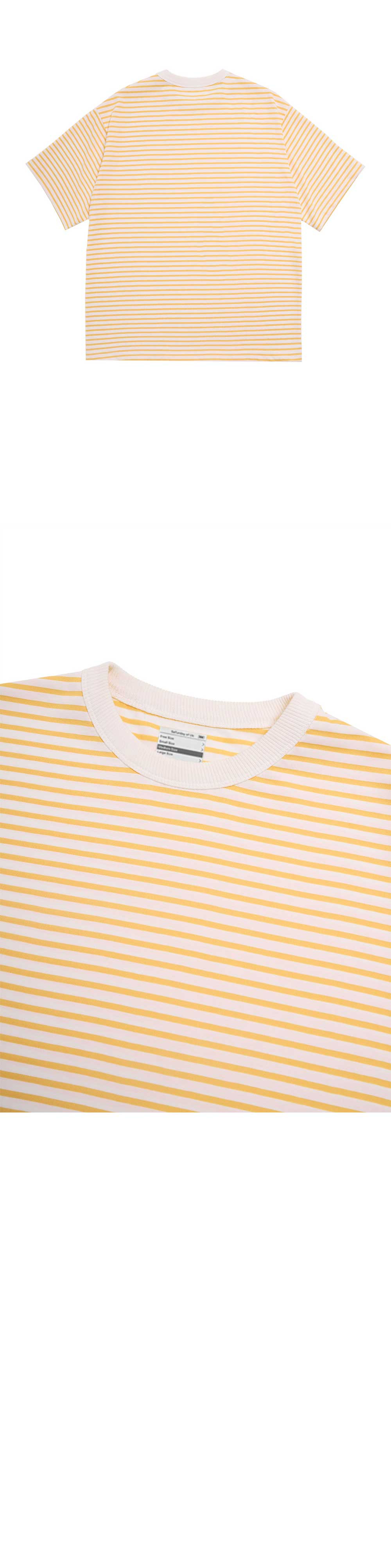 - 스트라이프 패턴 - 립 배색 디테일 - 프린팅 사이즈 표기