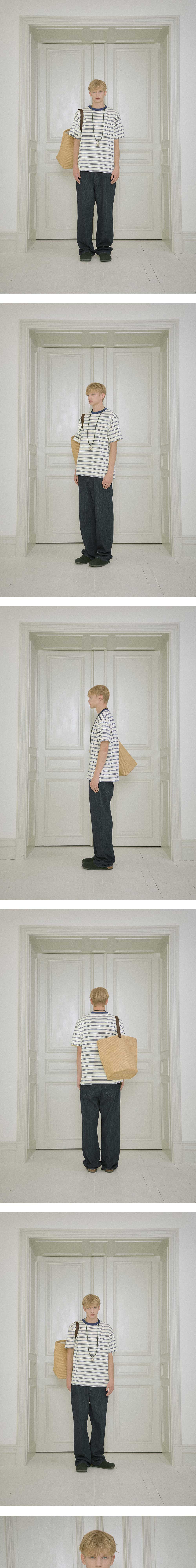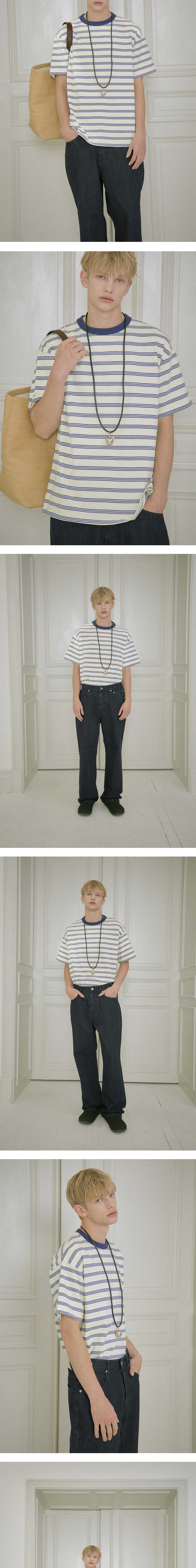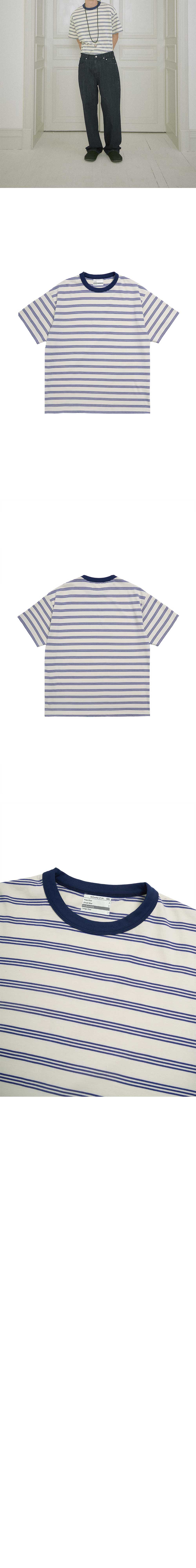 - 멀티 스트라이프 패턴 - 립 배색 디테일 - 프린팅 사이즈 표기