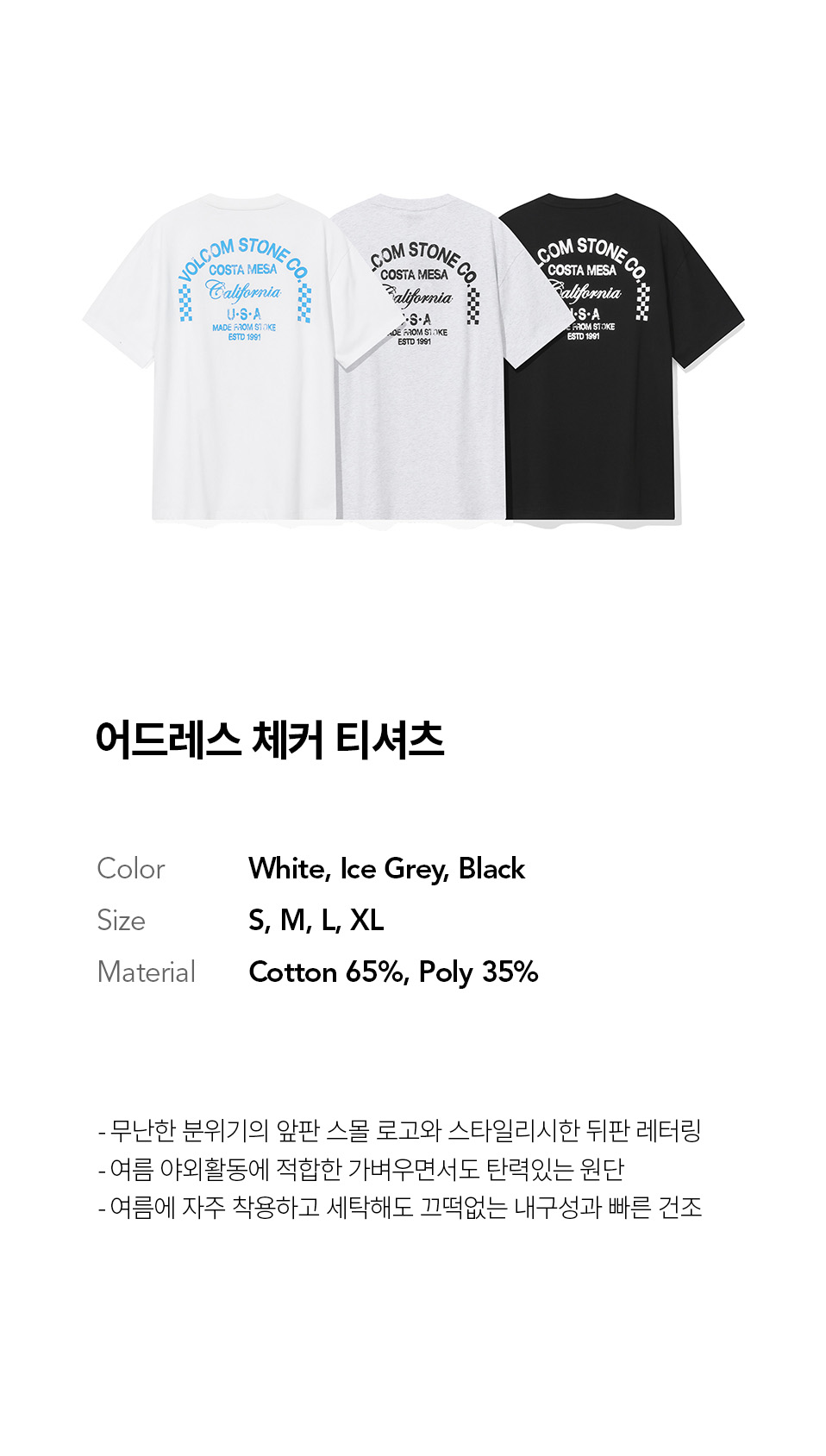 볼컴 어드레스 체커 티셔츠 (아이스 그레이)