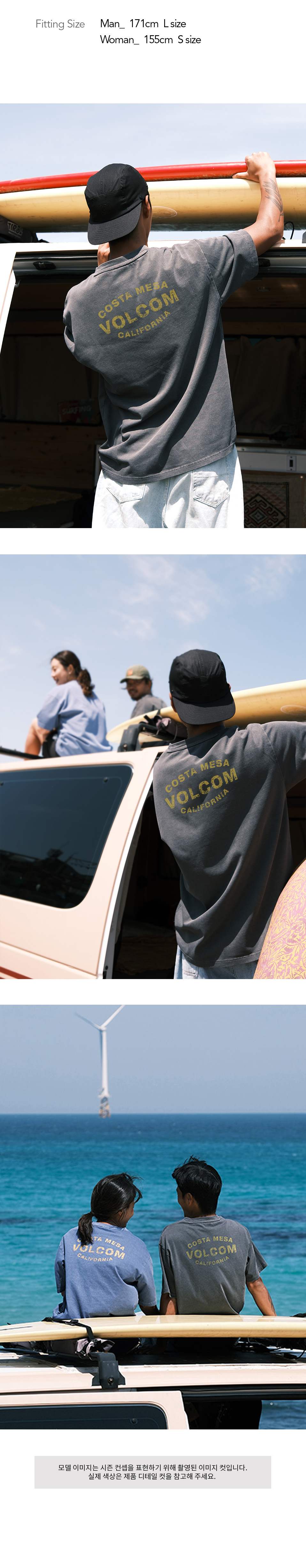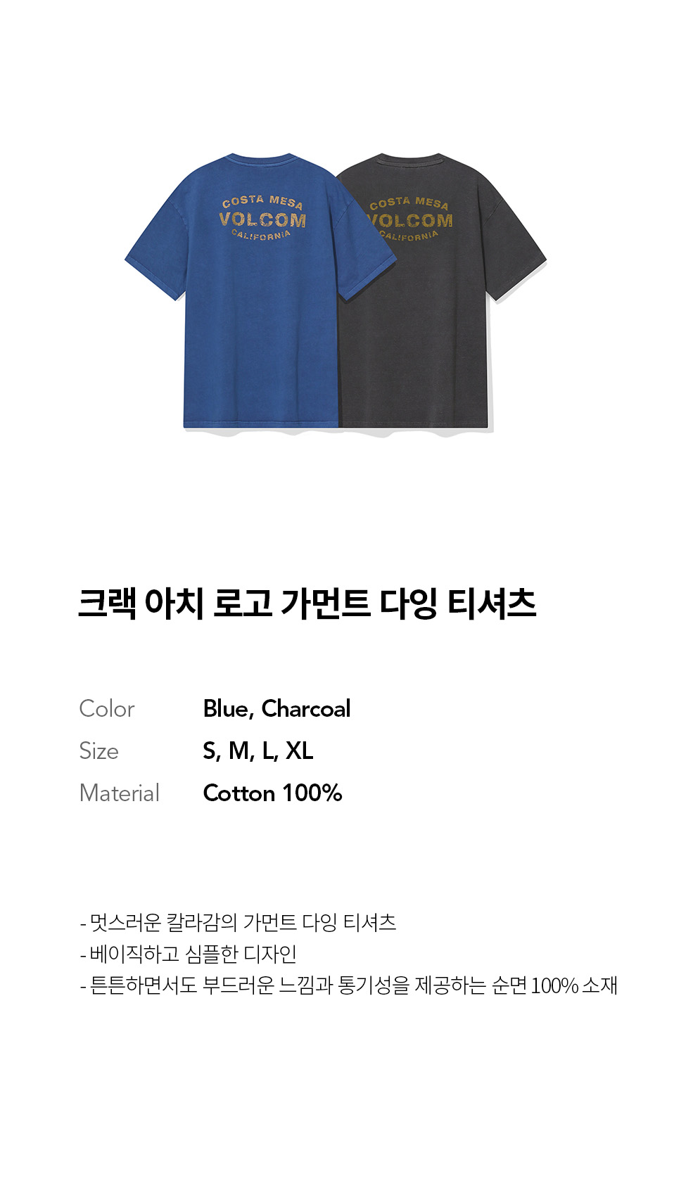 볼컴 크랙 아치 로고 가먼트 다잉 티셔츠 (차콜)