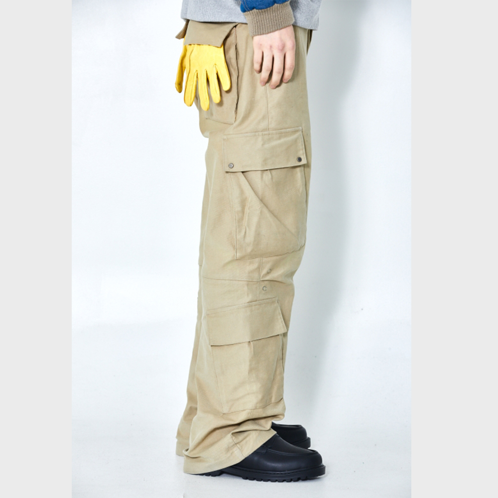 블루 선플라워 세미 와이드 카고 팬츠 베이지