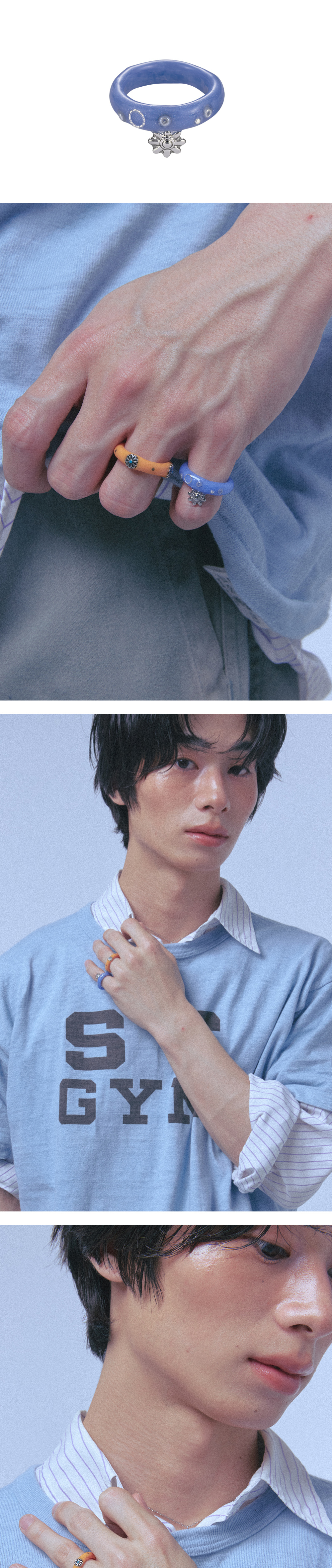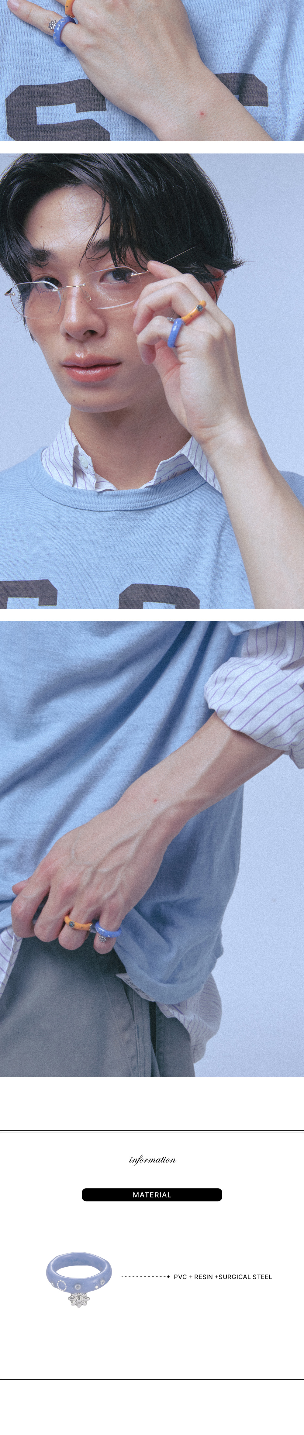 해당 상품은 주문 제작 상품으로 제작 기간은 영업일 기준 3~7일 소요됩니다. 핸드메이드 특성상 컬러, 패턴, 형태가 일정하지 않을 수 있습니다. 클레이 반지 제작 과정에서 발생하는 미세한 선은 불량이 아니며, 불투명 소재 컬러는 소성 과정에서 크랙처럼 보일 수 있지만 불량 제품은 아님을 알려드립니다.