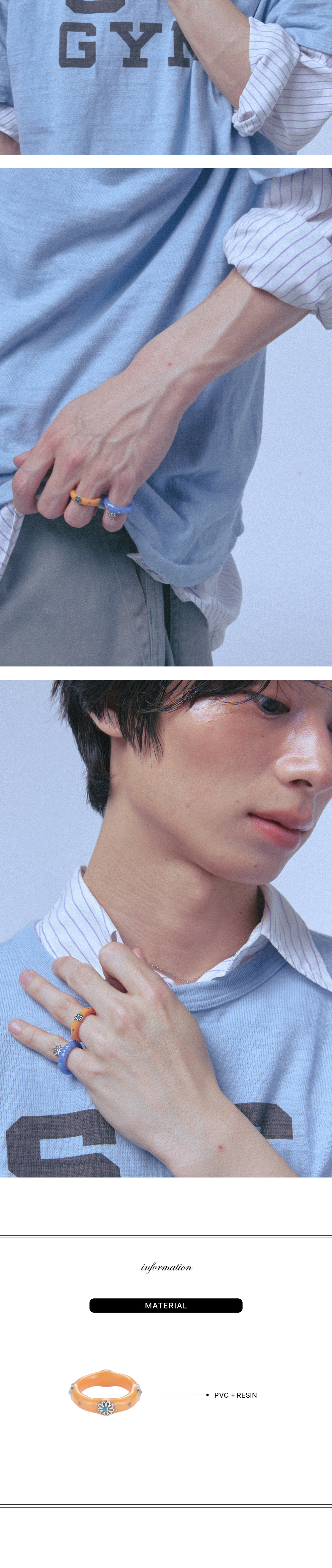핸드메이드 특성상 컬러, 패턴, 형태가 일정하지 않을 수 있습니다. 클레이 반지 제작 과정에서 발생하는 미세한 선은 불량이 아니며, 불투명 소재 컬러는 소성 과정에서 크랙처럼 보일 수 있지만 불량 제품은 아님을 알려드립니다.