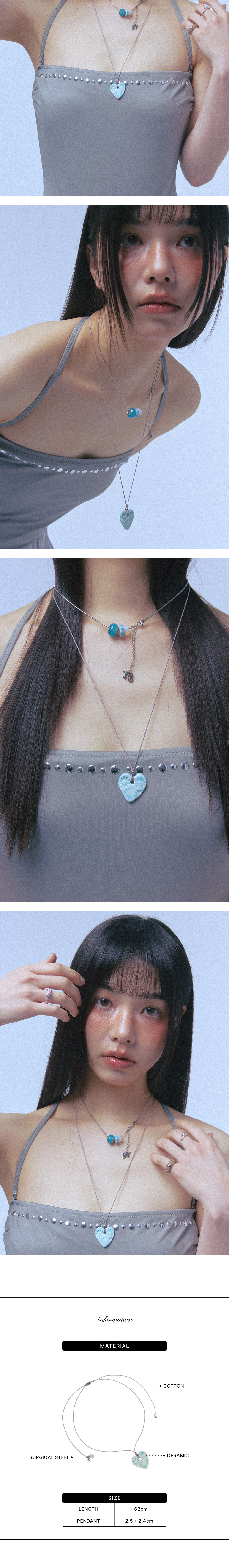 *수작업으로 제작된 세라믹 펜던트입니다 형태와 유약의 발림, 크기가 동일하지 않으니 이 점 참고 바랍니다 *펜던트 뒷면은 유약 처리가 되어 있지 않아, 고온에서 구워지면서 표면에 미세한 긁힘이나 마모가 발생할 수 있습니다. *수공예 특성상 사이즈 오차가 생길 수 있으며 형태, 컬러감이 사진과 다를 수 있습니다. *제작 과정에서 발생하는 작은 반점, 미세한 스크래치, 갈라짐, 돌기, 기포가 보일 수 있으며 이는 불량이 아님을 알려드립니다. *유약의 뭉침, 흐름 자국이 발생할 수 있으며 수작업 특성상 페인팅 된 부분은 깔끔하지 않을 수 있으니 참고하여 신중한 구매 부탁드립니다. 얇은 끈을 매듭으로 작업하여 제품 특성상 사용감에 따라 사이즈가 늘어날 수 있는 점 참고 부탁드립니다. 양쪽 끝의 끈을 잡아당겨 사이즈를 조절하실 수 있는 제품입니다. 제작 특성상 초반엔 다소 타이트할 수 있습니다.