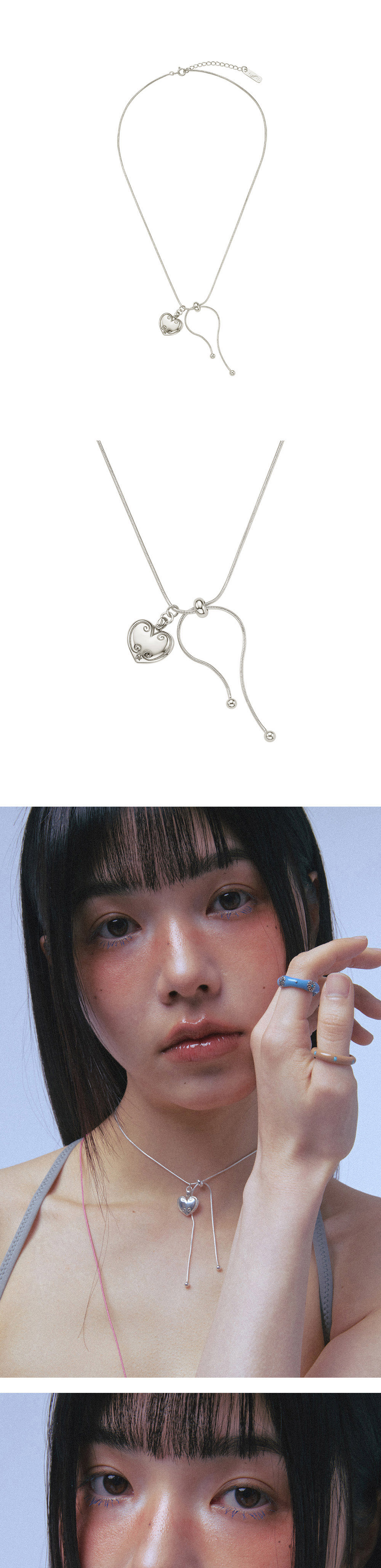 볼륨감 있는 하트 모양의 펜던트와 자유롭게 조절할 수 있는 실버 체인으로 다양한 스타일을 연출할 수 있는 목걸이입니다.