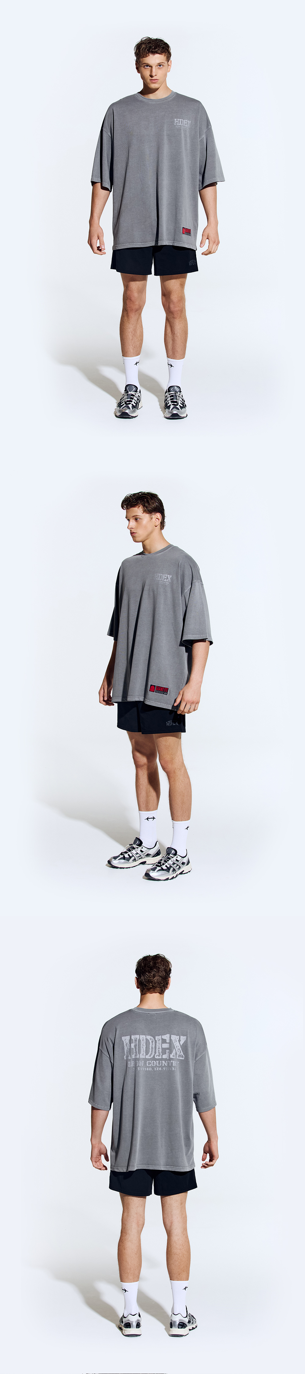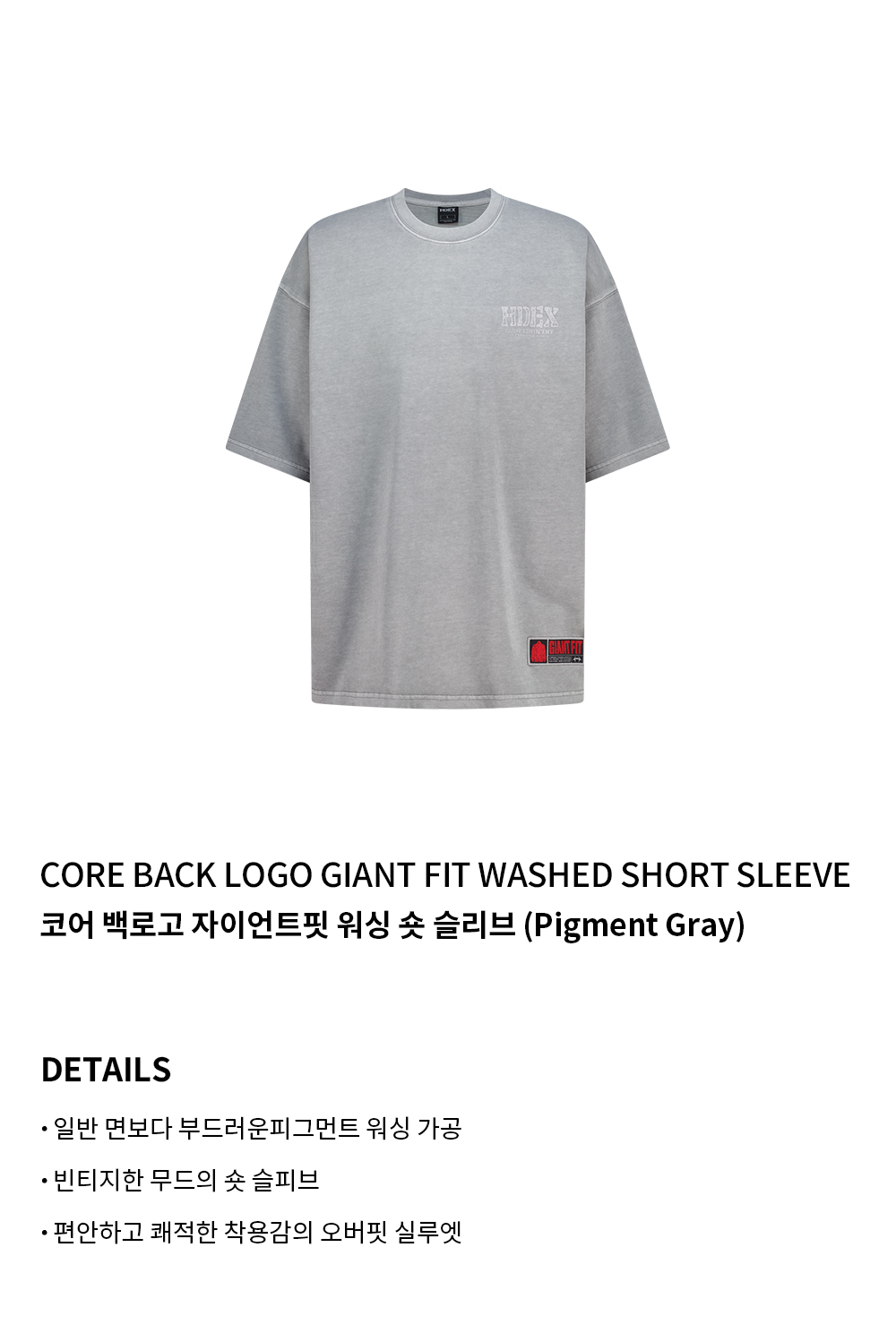 에이치덱스 코어 백로고 자이언트핏 워싱 숏 슬리브 피그먼트 그레이