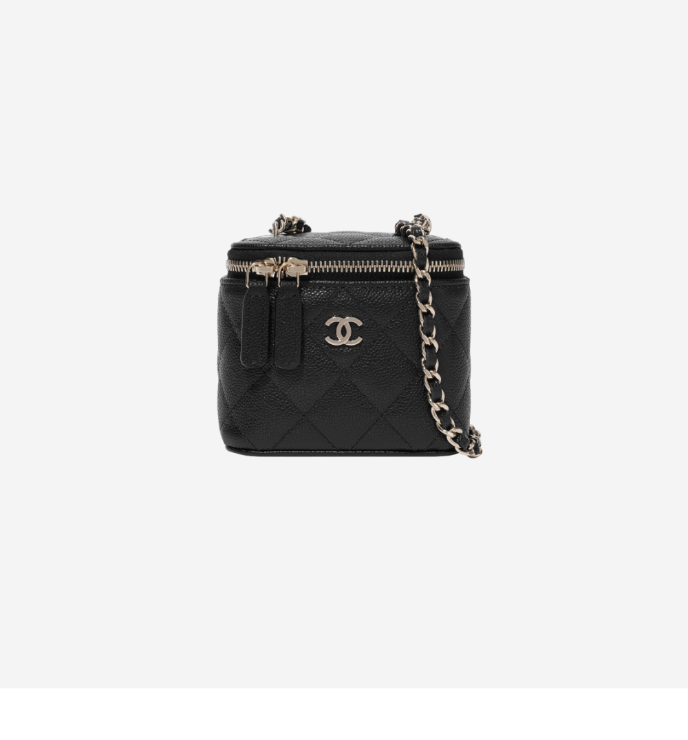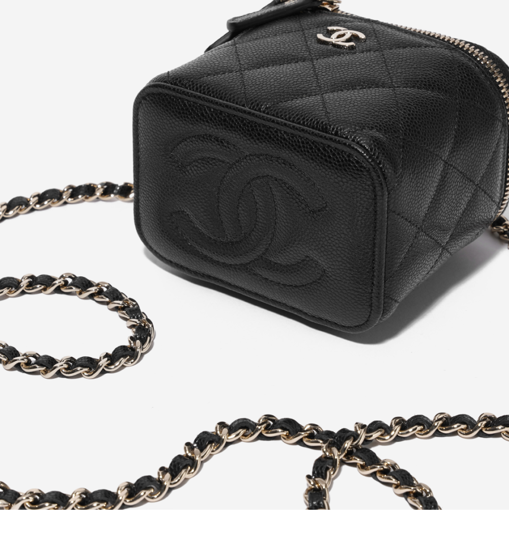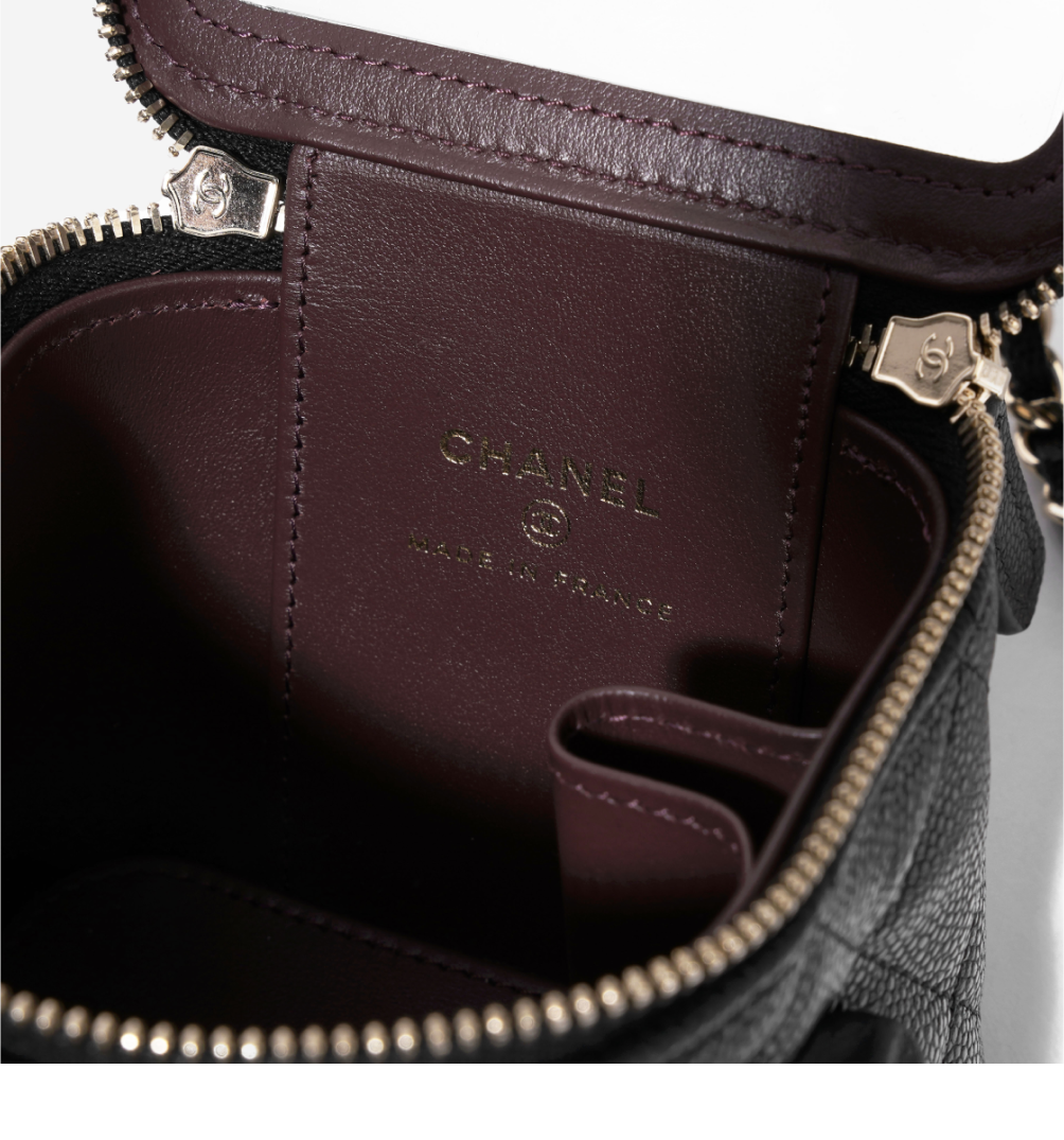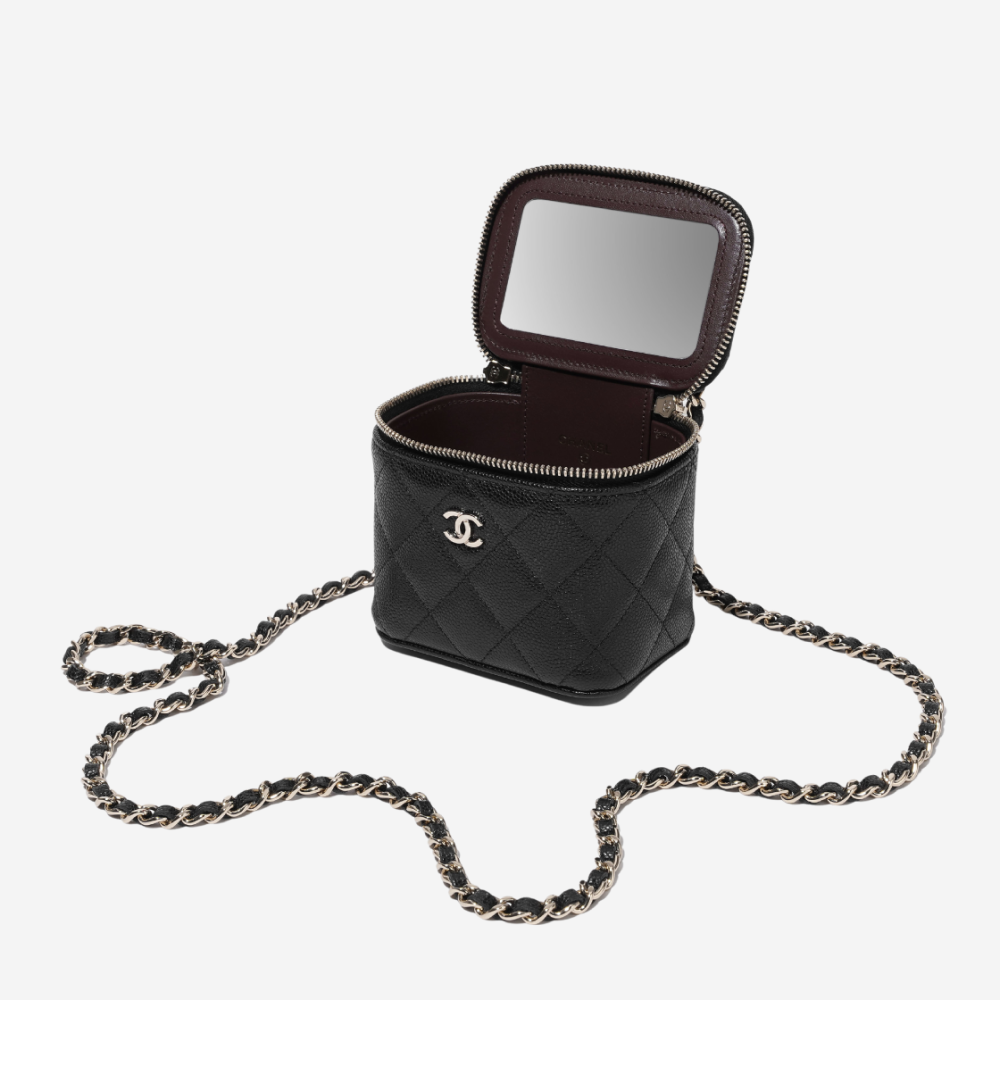 샤넬 클래식 스몰 체인 코스메틱 케이스 그레인드 카프스킨 & 골드 메탈 블랙 (내부 거울 포함)