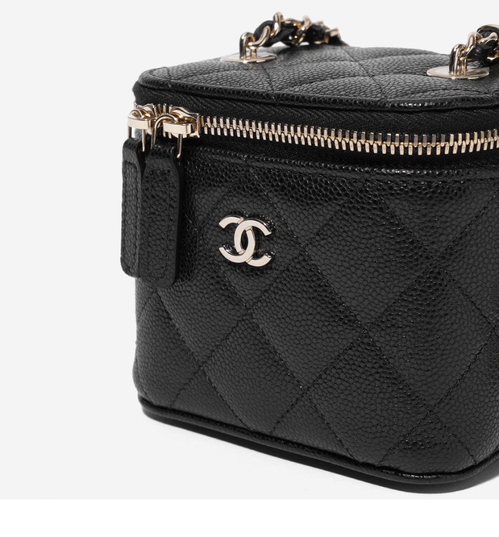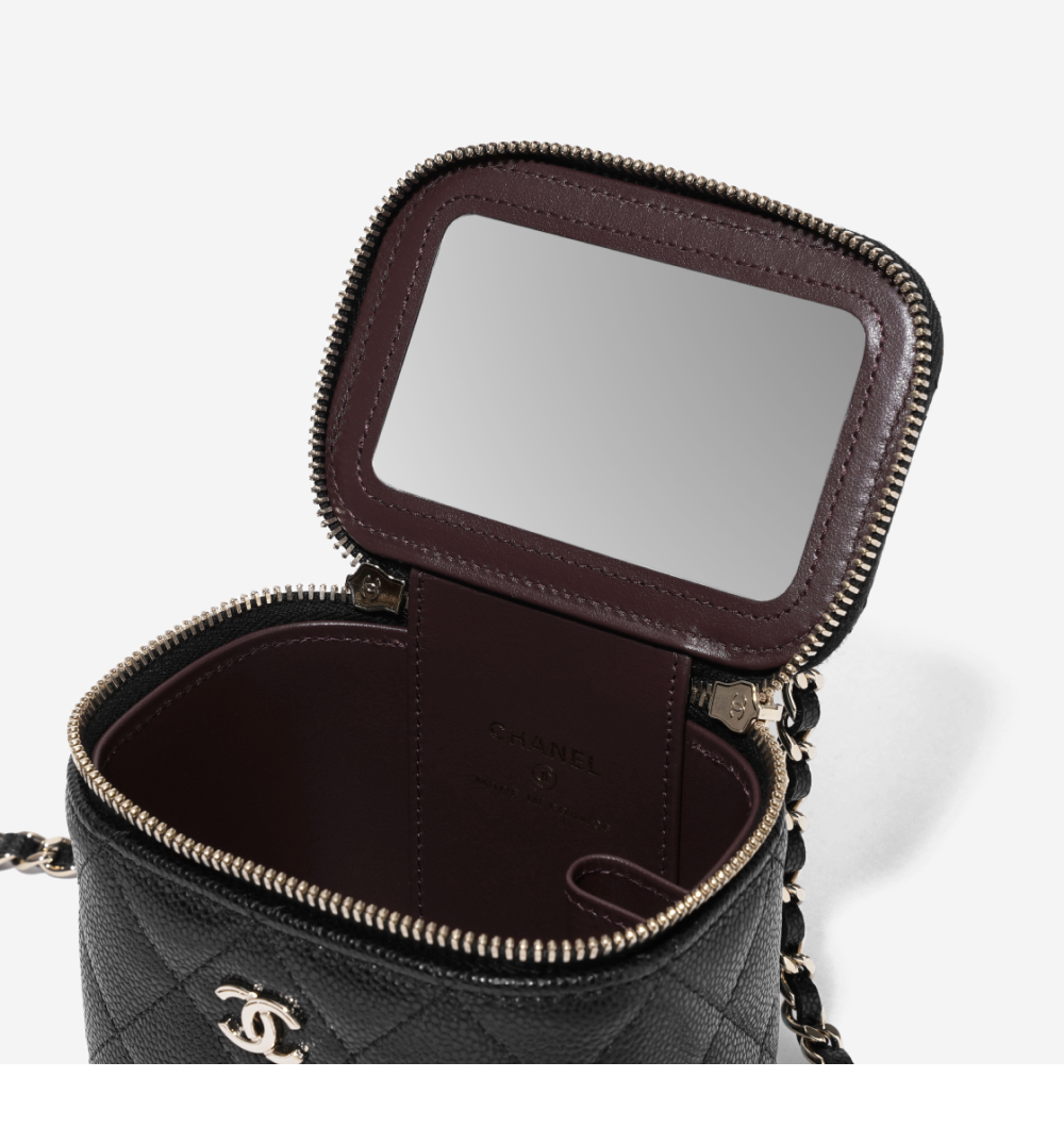 Chanel Small Classic Vanity with Chain Grained Calfskin & Gold Black (Inside Mirror)