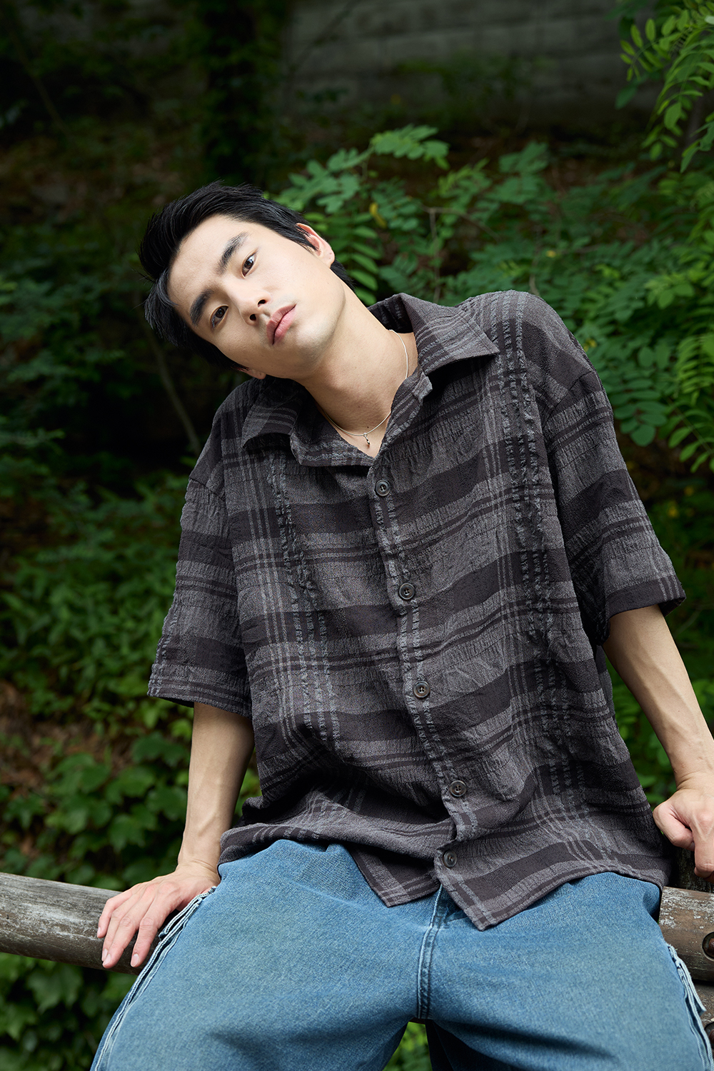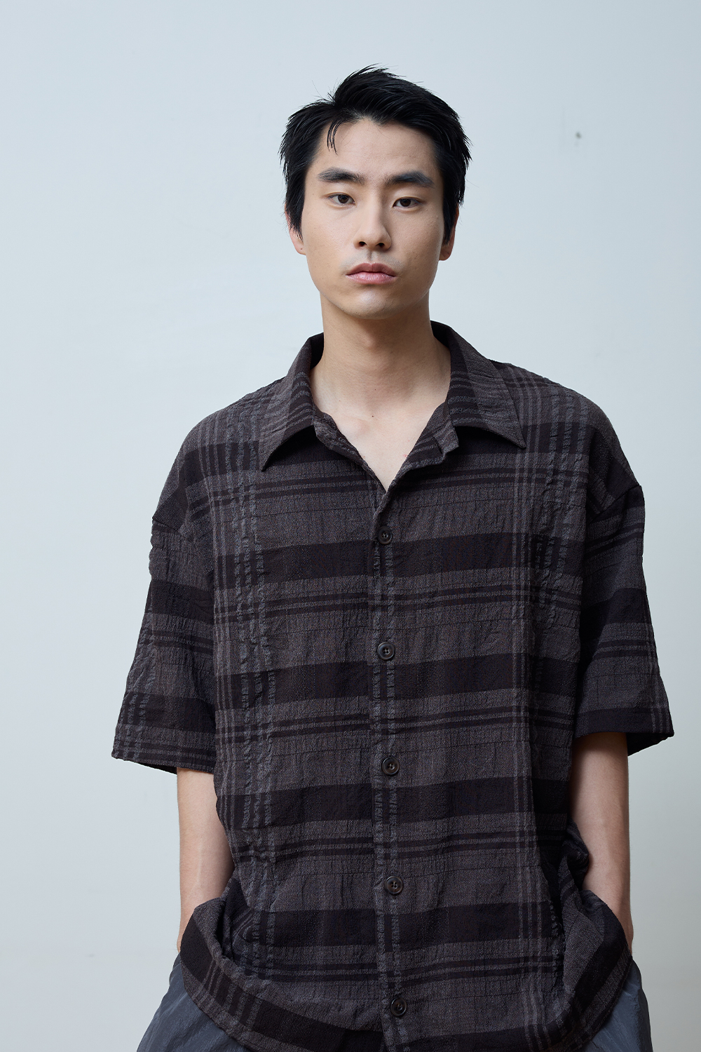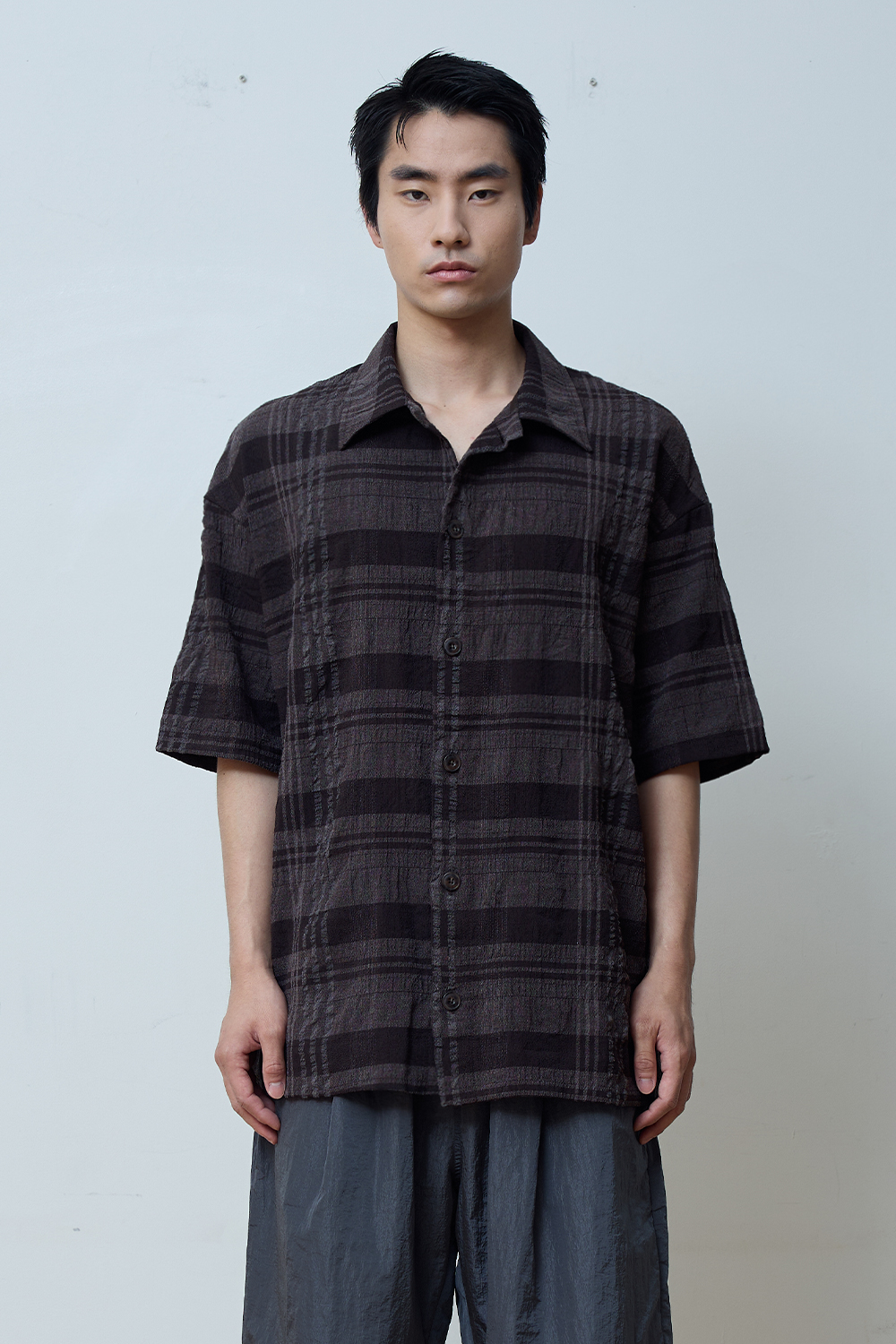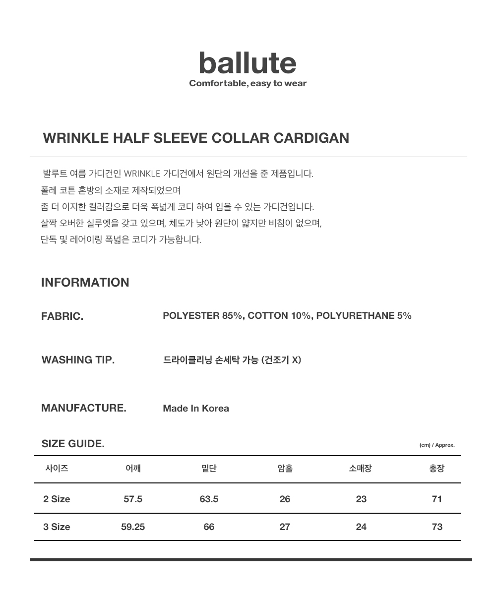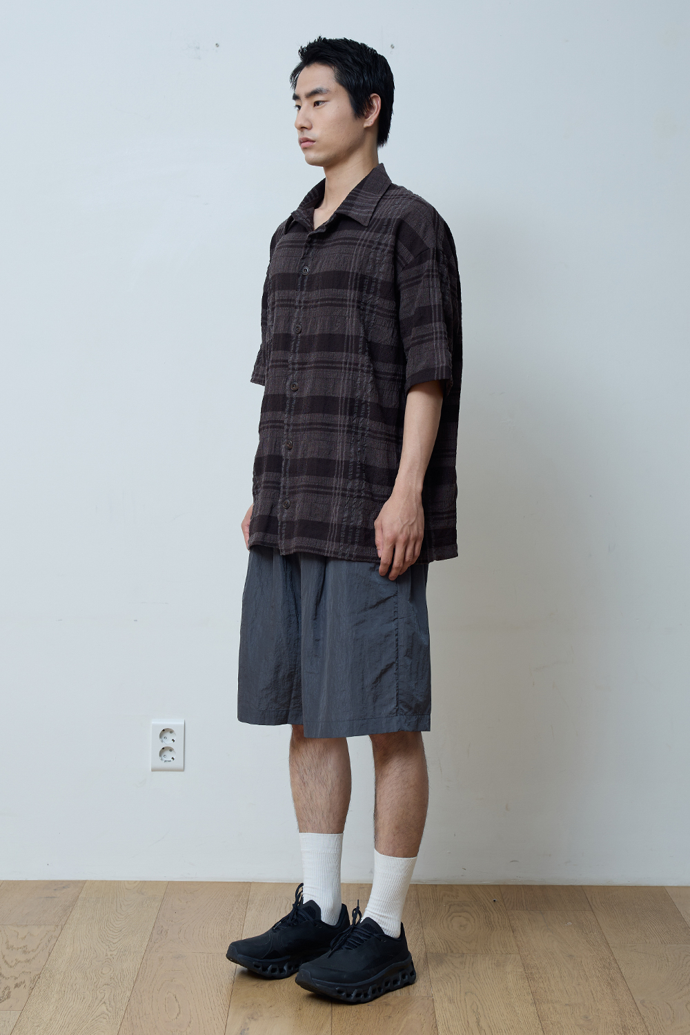발루트 링클 하프 슬리브 카라 가디건 브라운 체크