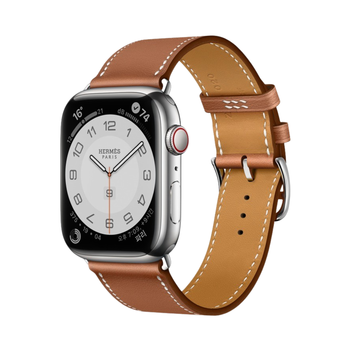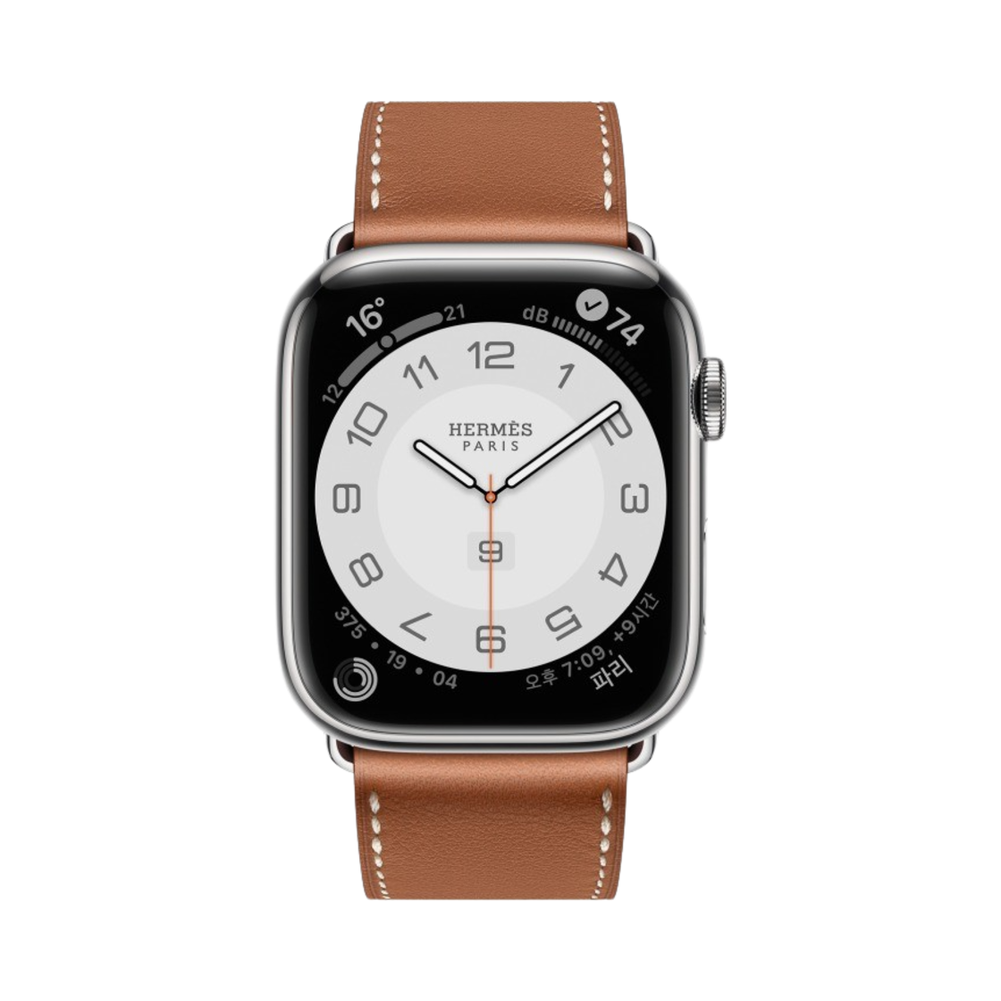 애플 워치 7 에르메스 45mm 실버 스테인리스 스틸 케이스 싱글 투어 골드 (국내 정식 발매 제품)