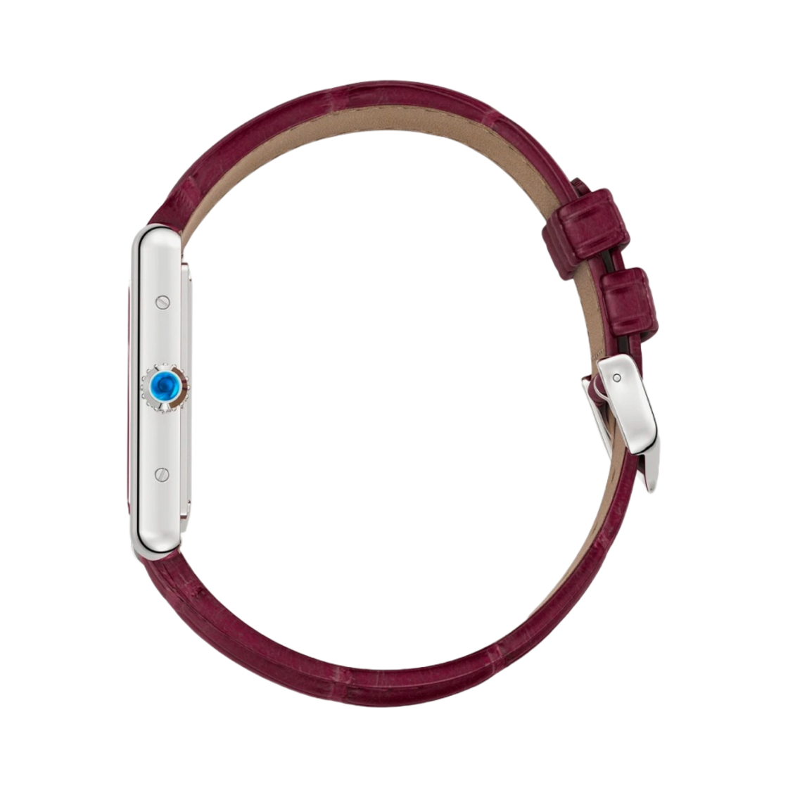 까르띠에 탱크 머스트 워치 라지 쿼츠 스틸 엘리게이터 스킨 클라렛