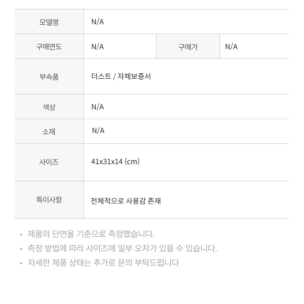 모든 상품(가죽, 의류, 잡화, 슈즈 등)은 사용자의 사용방법과 환경에 따라 변형, 변색이 될 수 있으니 반드시 취급 라벨에 표시된 관리 안내를 따르시길 권장 드립니다. 이는 정도의 차이가 있으며 과도한 체열과 땀, 습기, 빛, 마찰은 제품의 손상 및 변형을 일으킬 수 있으므로 주의하시길 바랍니다.