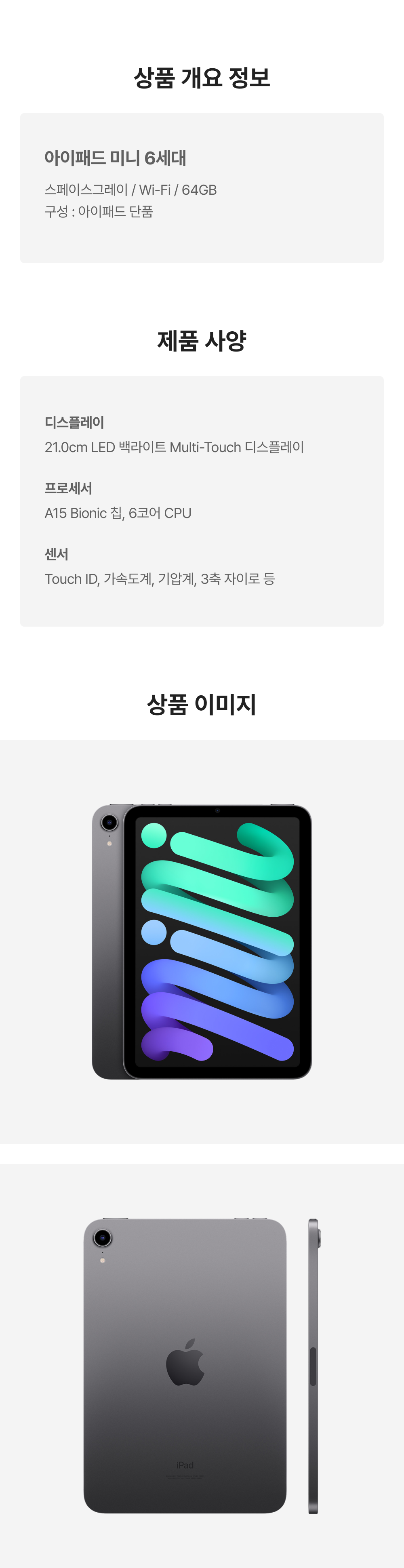 [B등급] 리퍼비시 아이패드 미니 6세대 wifi A15 Bionic 64기가 스페이스그레이