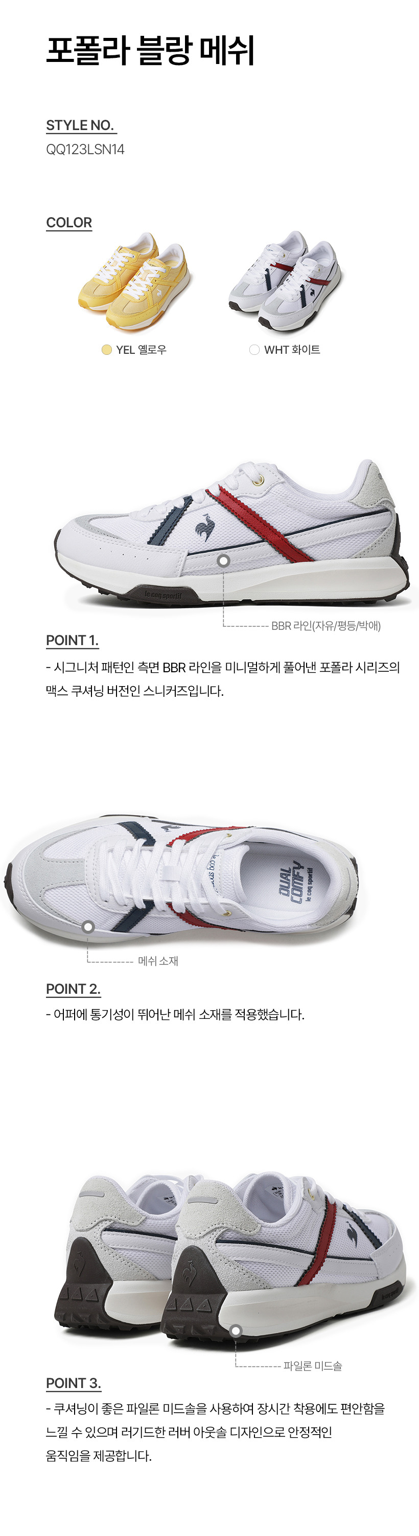 르꼬끄 스포르티브 포폴라 블랑 메쉬 - 옐로우(QQ123LSN14)