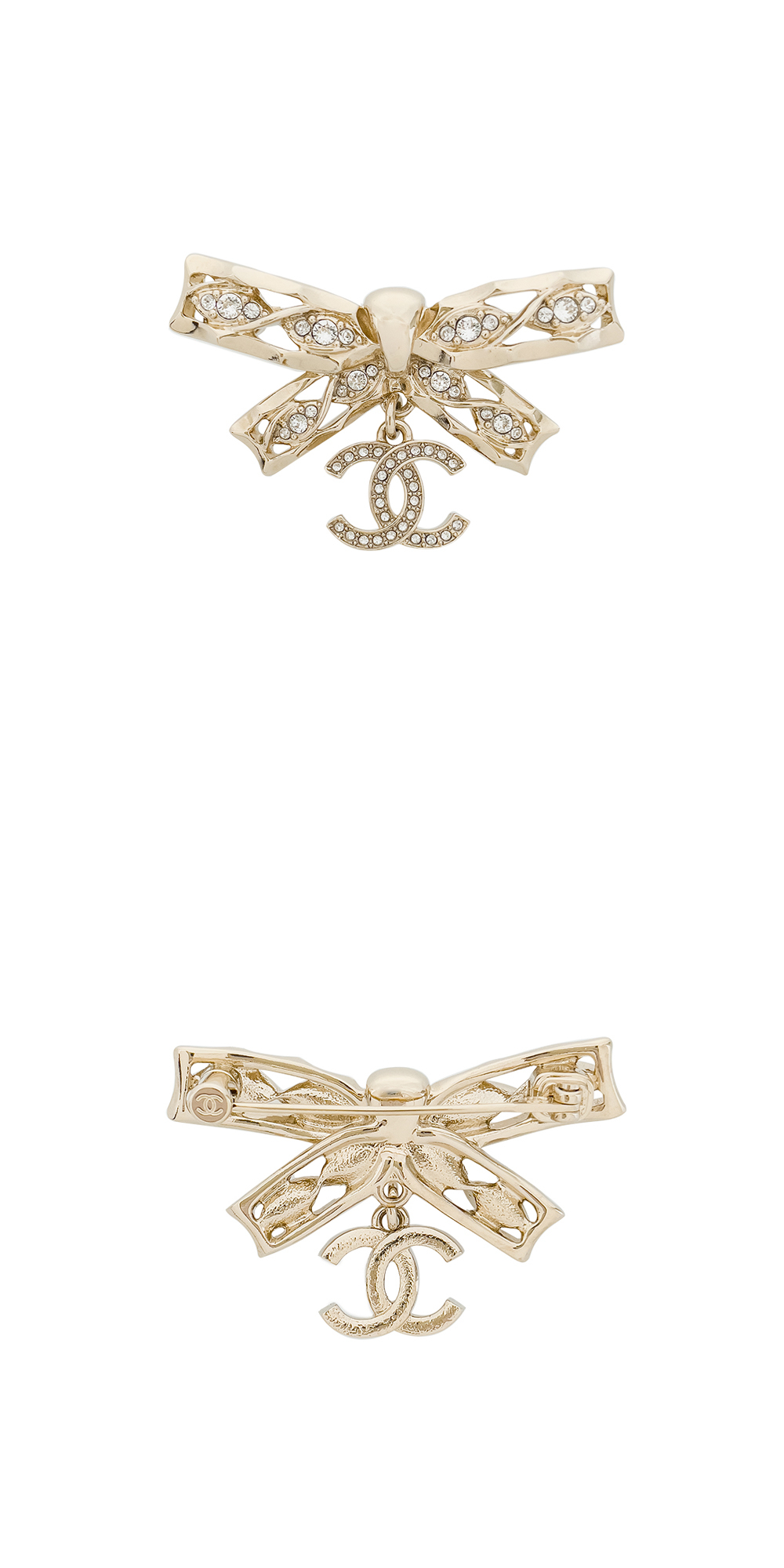 샤넬 24B 리본 CC로고 드랍 브로치 샴페인골드