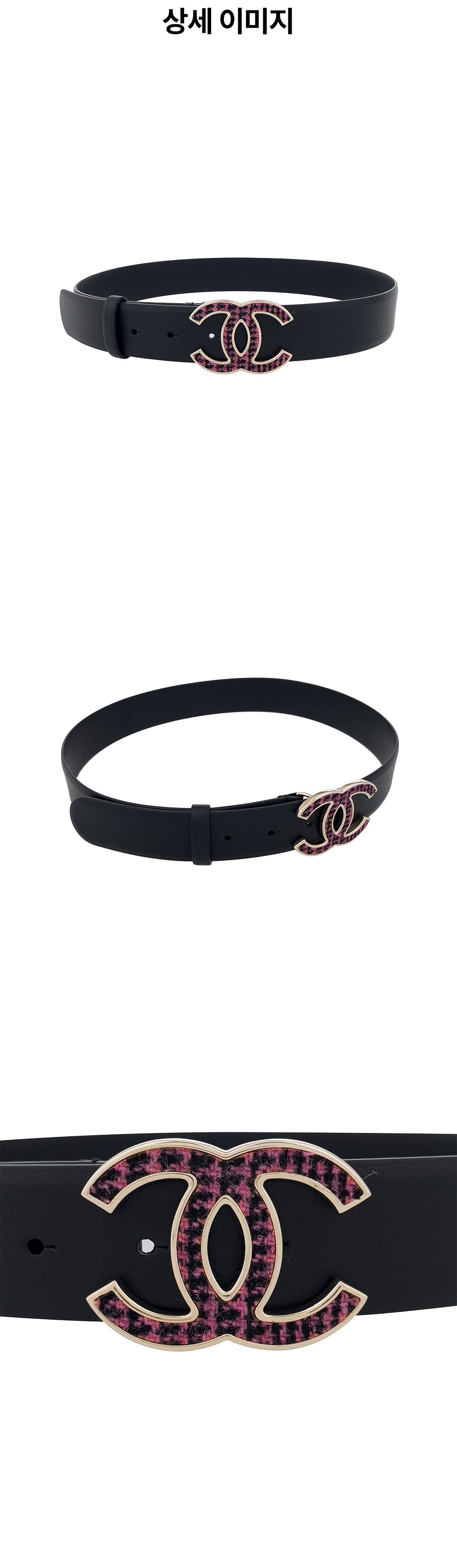 샤넬 22K 트위드 CC로고 벨트 75 블랙/핑크 샴페인골드