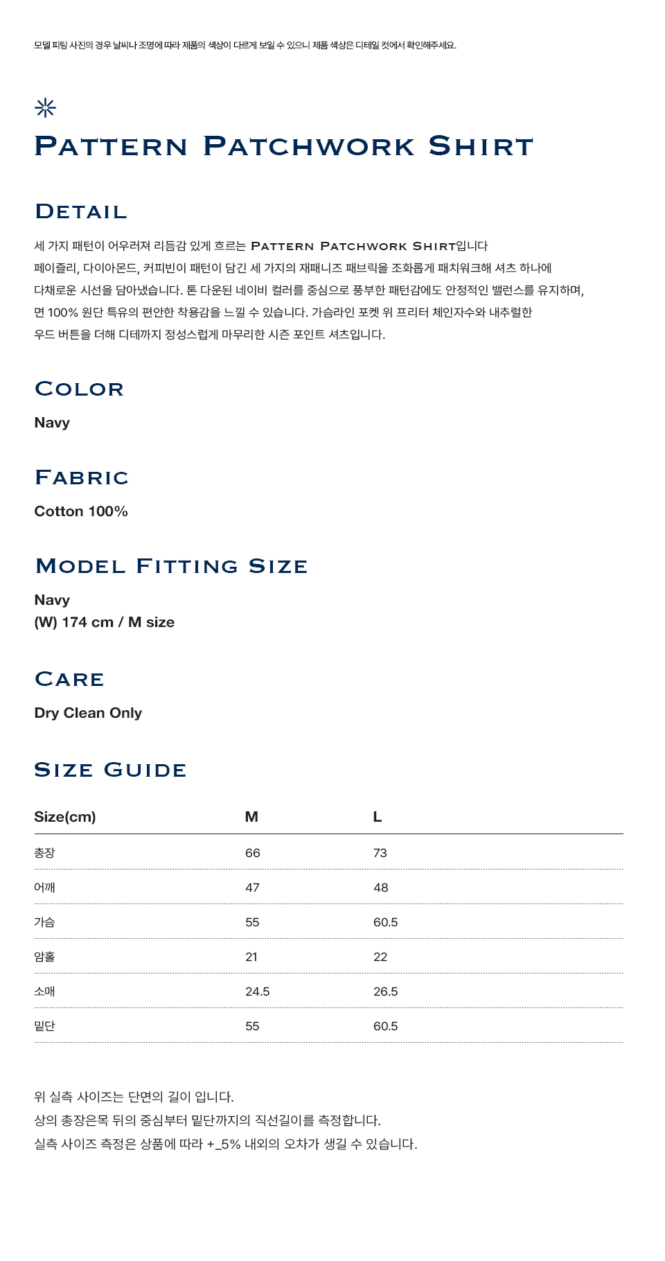 프리터 패턴 패치워크 셔츠 네이비
